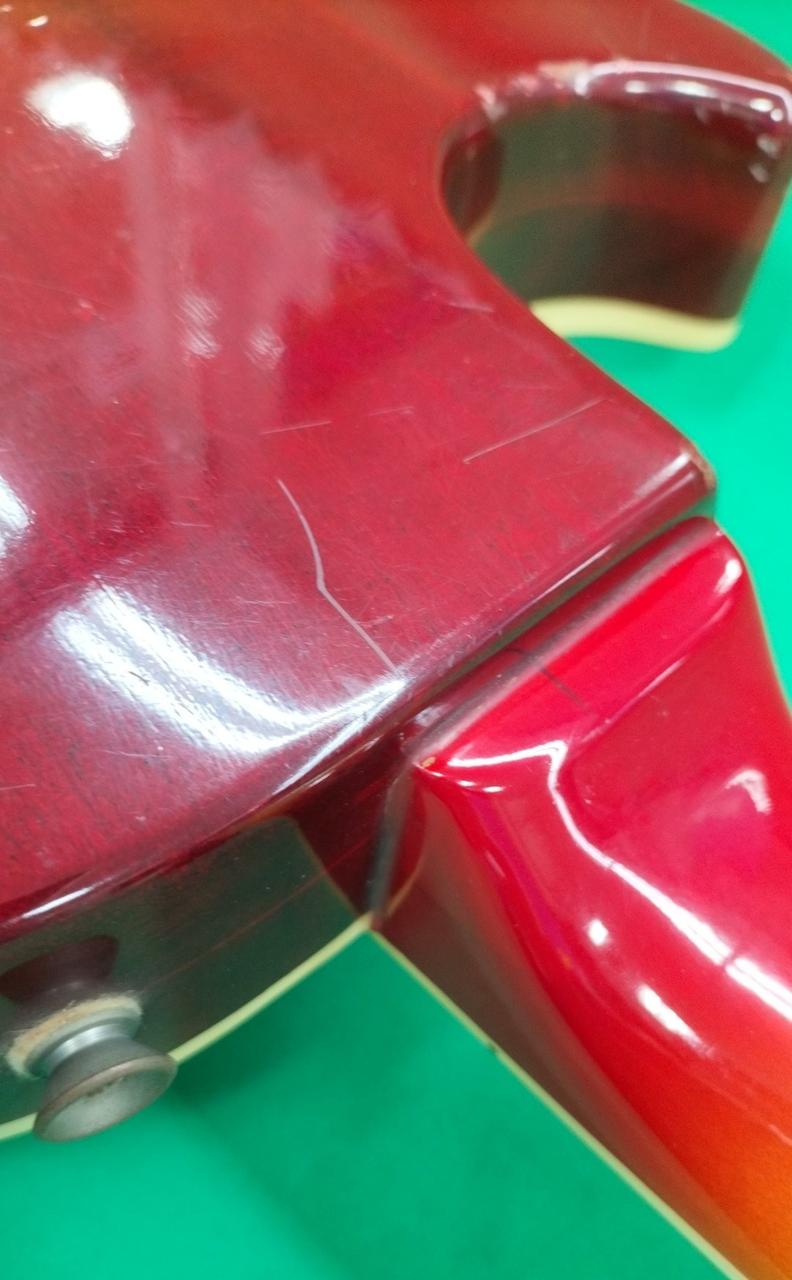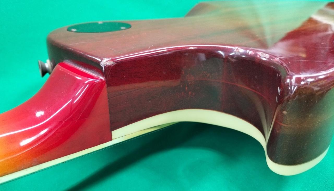 フレットすり合わされており、かなり低いです。6割程度。 |