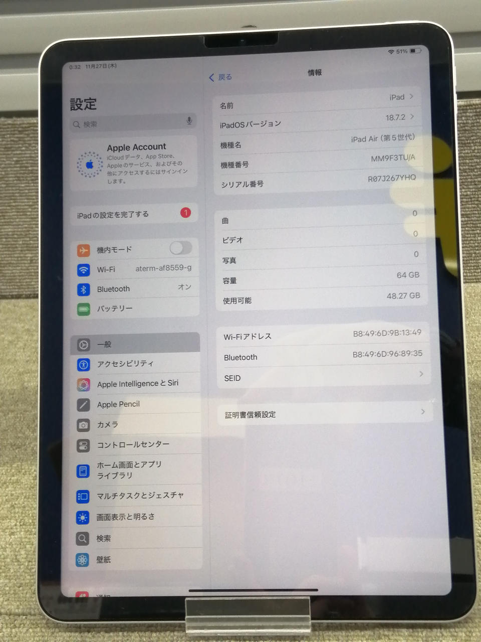 ストレージ容量:64GB 画面サイズ:10.9インチ 画面解像度:2360x1640 |
