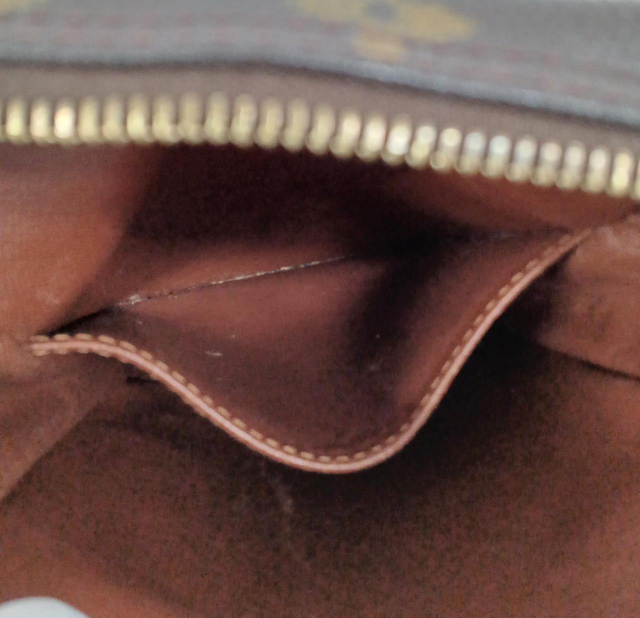 ショルダー付け根のヌメ革切れてます |