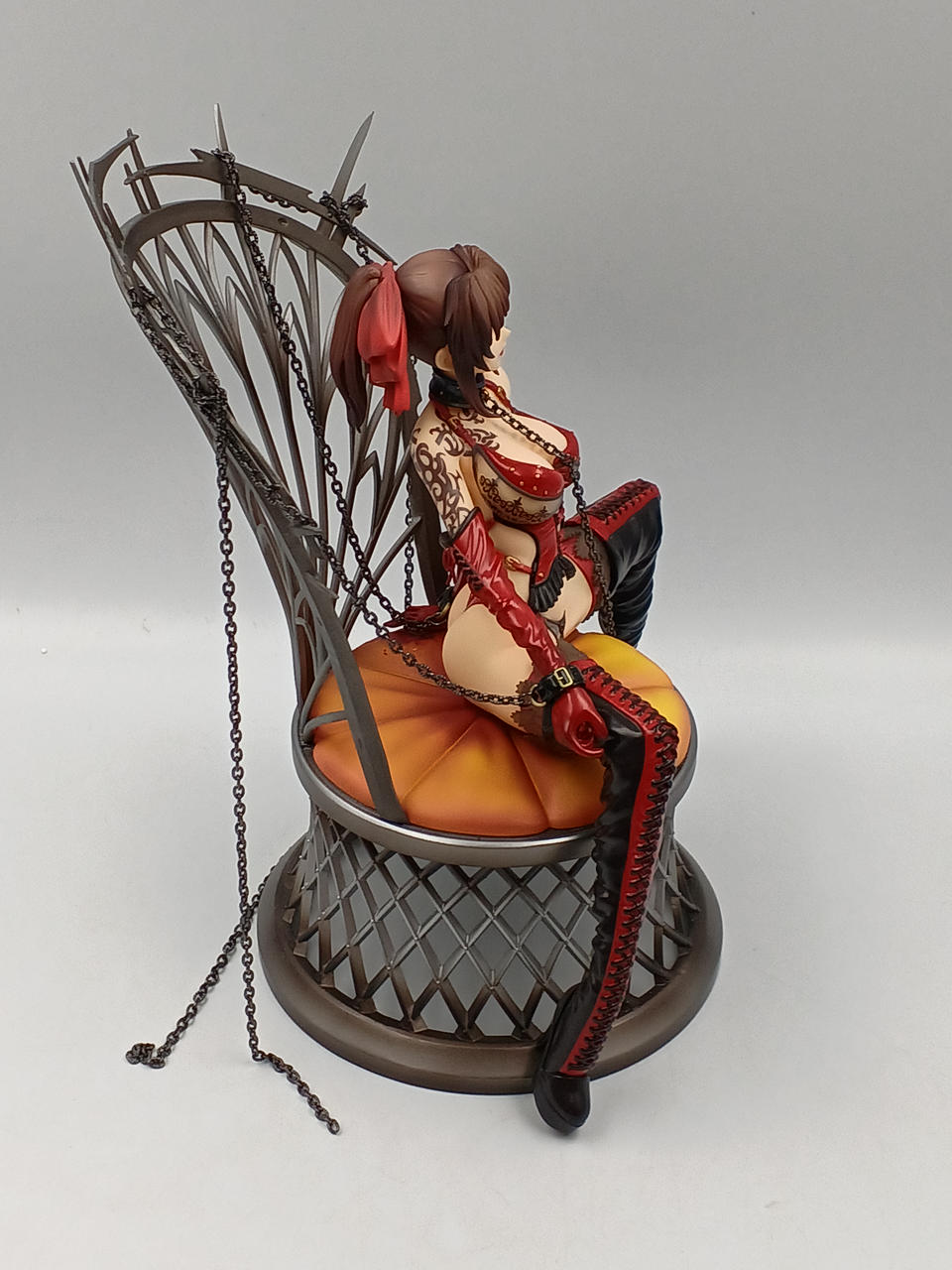 箱あり・開封品となります。展示済みのお品物となります。箱に破れや日焼けなど強い傷みが有ります。本体髪の毛や肌色部分などに塗装剝げや色移りがあります。台座にキズや色移りがあります。写真に写っている付属品が全てです。 |