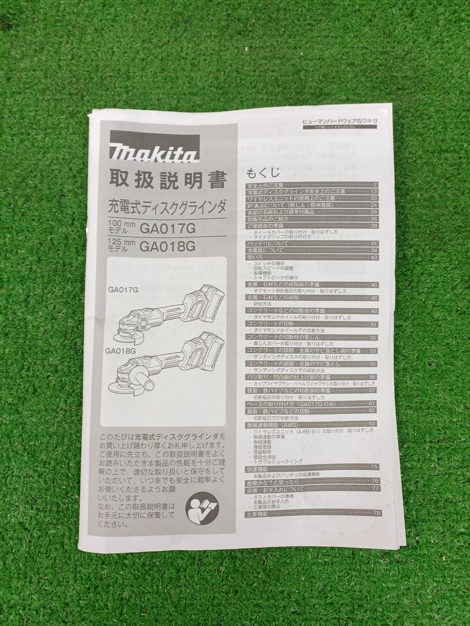 バッテリー(4.0Ah)×2 充電器(DC40RA) オフセット研削砥石 ロックナットレンチ プラスチックケース ホイールカバー バッテリーカバー付属 |