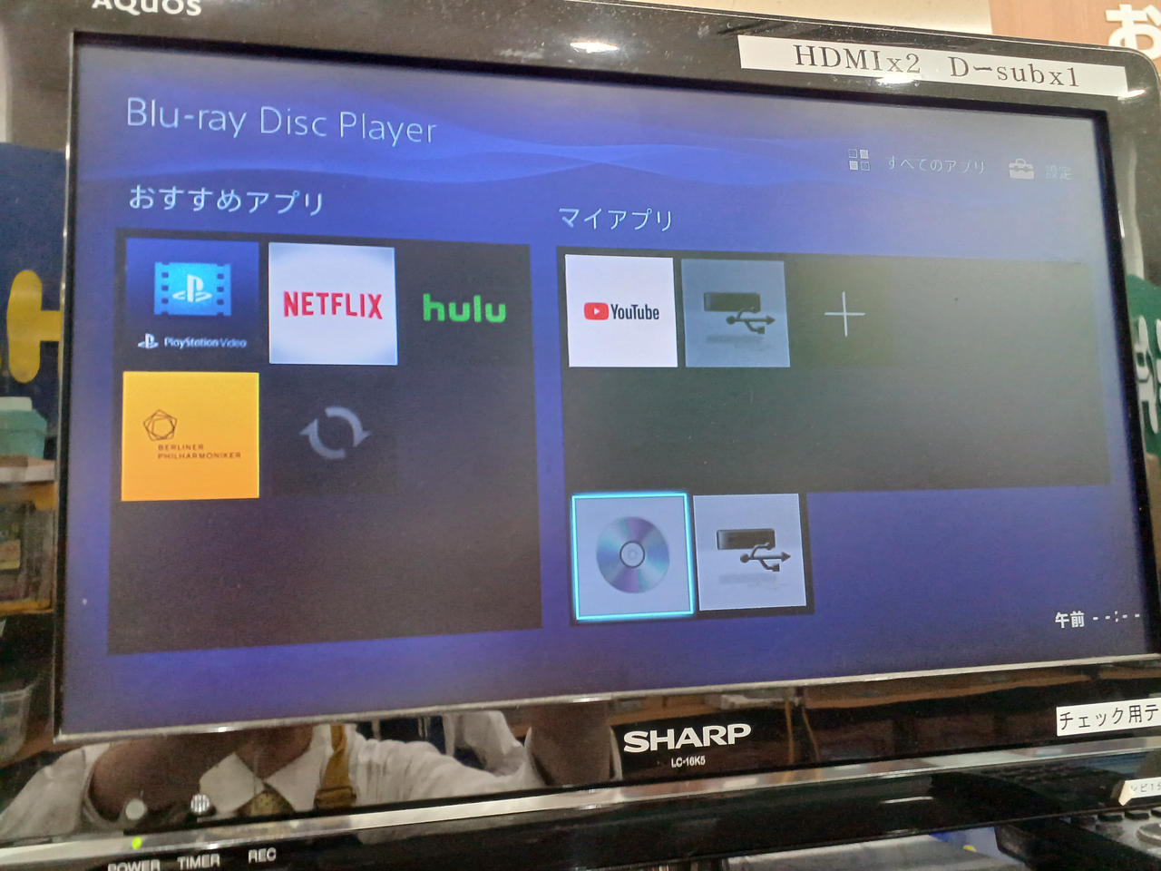 映像出力端子:HDMI 対応メディア:BD/DVD/CD/USB |