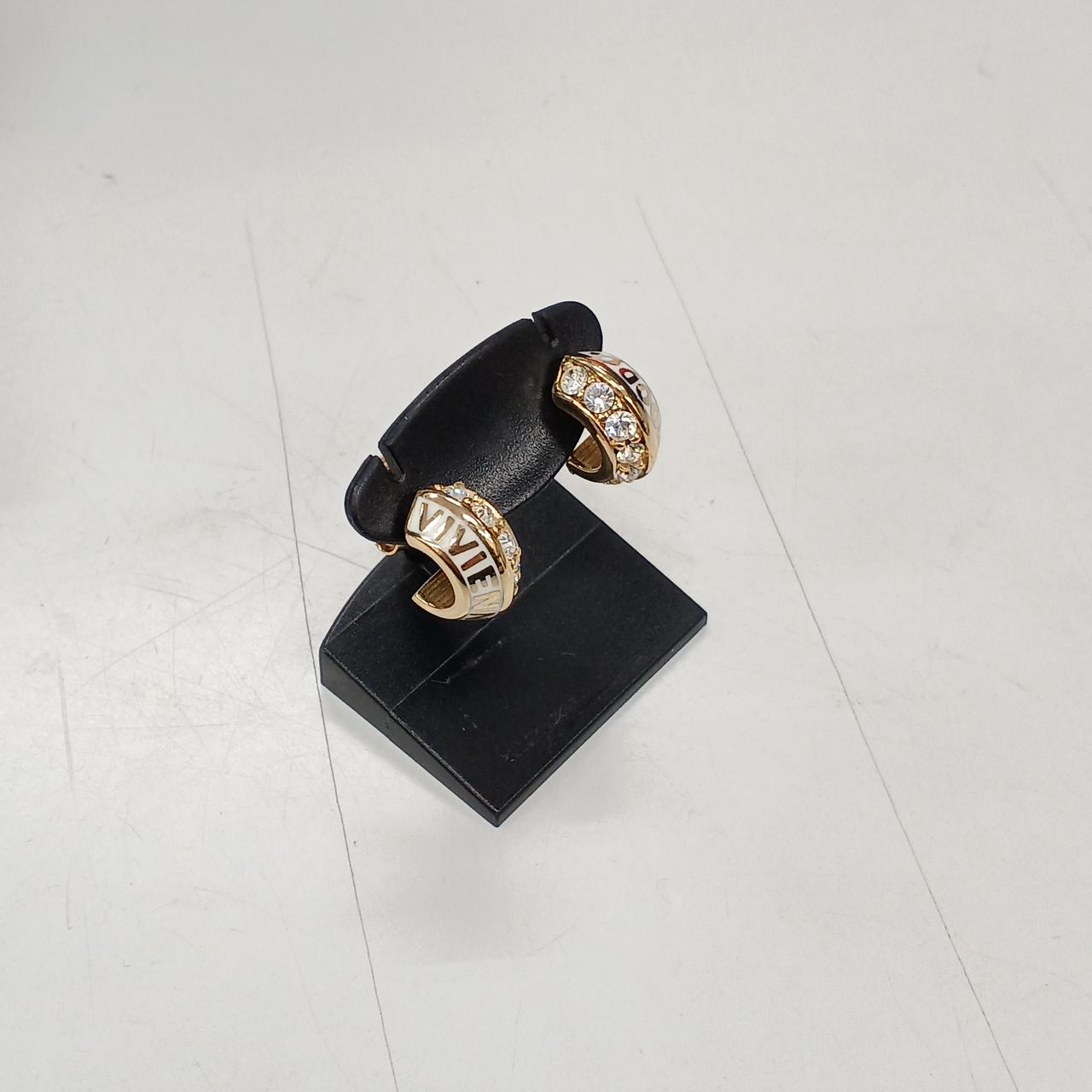 テキストロゴとクリスタルがアクセントとなったピアスです