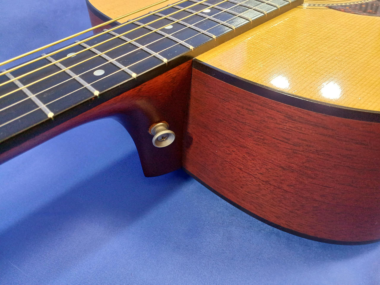 トップには厳選されたシトカスプルース単板、サイド&バックに単板マホガニーを採用し心地よい音抜けが特徴です! |