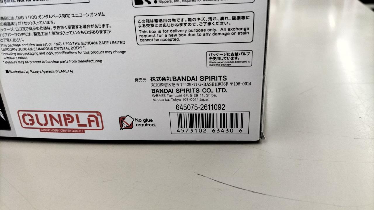 型番:MG ガンダムベース限定 ユニコーンガンダム