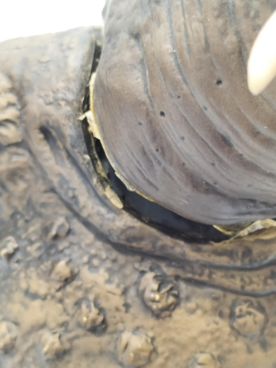 首や角が完全に折れて接着した跡があります。 |