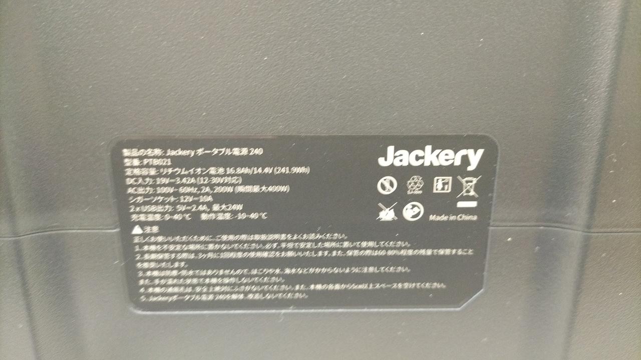 容量:241Wh/62700mAh 定格出力(W):200 最大出力(W):400