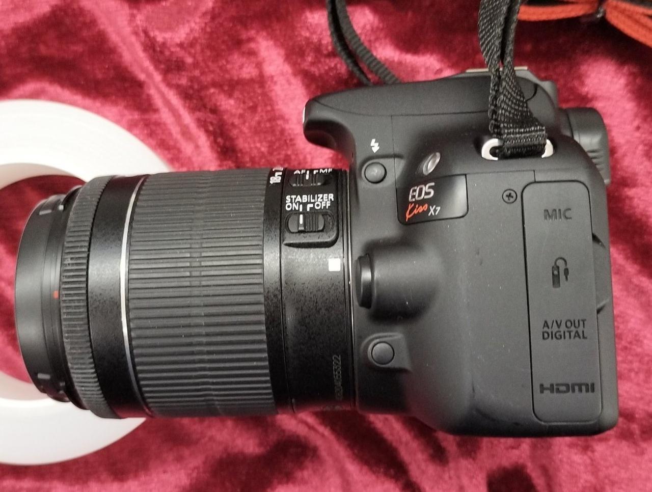 有効画素数:約1800万画素 撮像素子:APS-C(キヤノン基準)/CMOS CANONEFマウント SDXC対応 レンズ:EF-S18-55mm F3.5-5.6 IS STM ※バッテリ容量保証なし 付属品:充電器 バッテリー ストラップ レンズ |