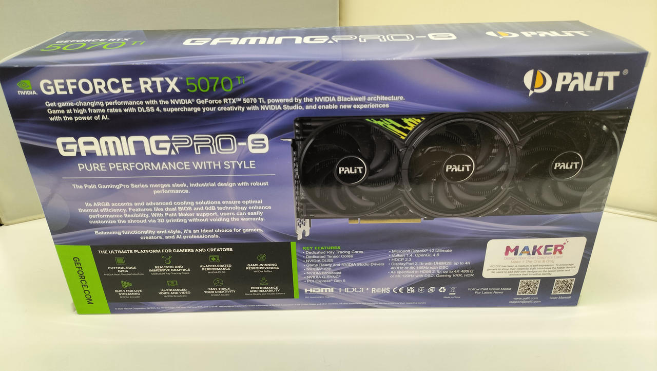 メモリ:GDDR7/16GB バスインターフェイス:PCI Express 5.0 |