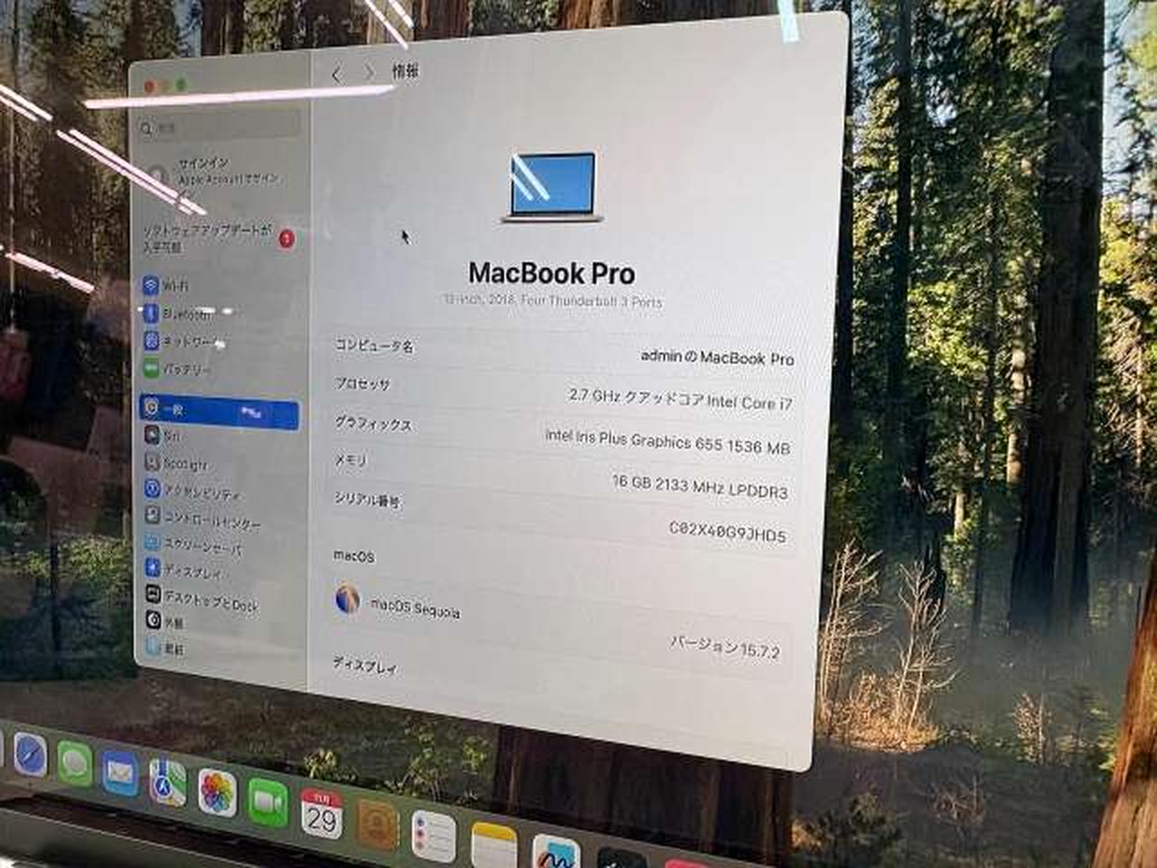 CPU:INTEL CORE I7@2.70GHZ RAM:16GB SSD:1TB OS:15.7.1SEQUOIA |
