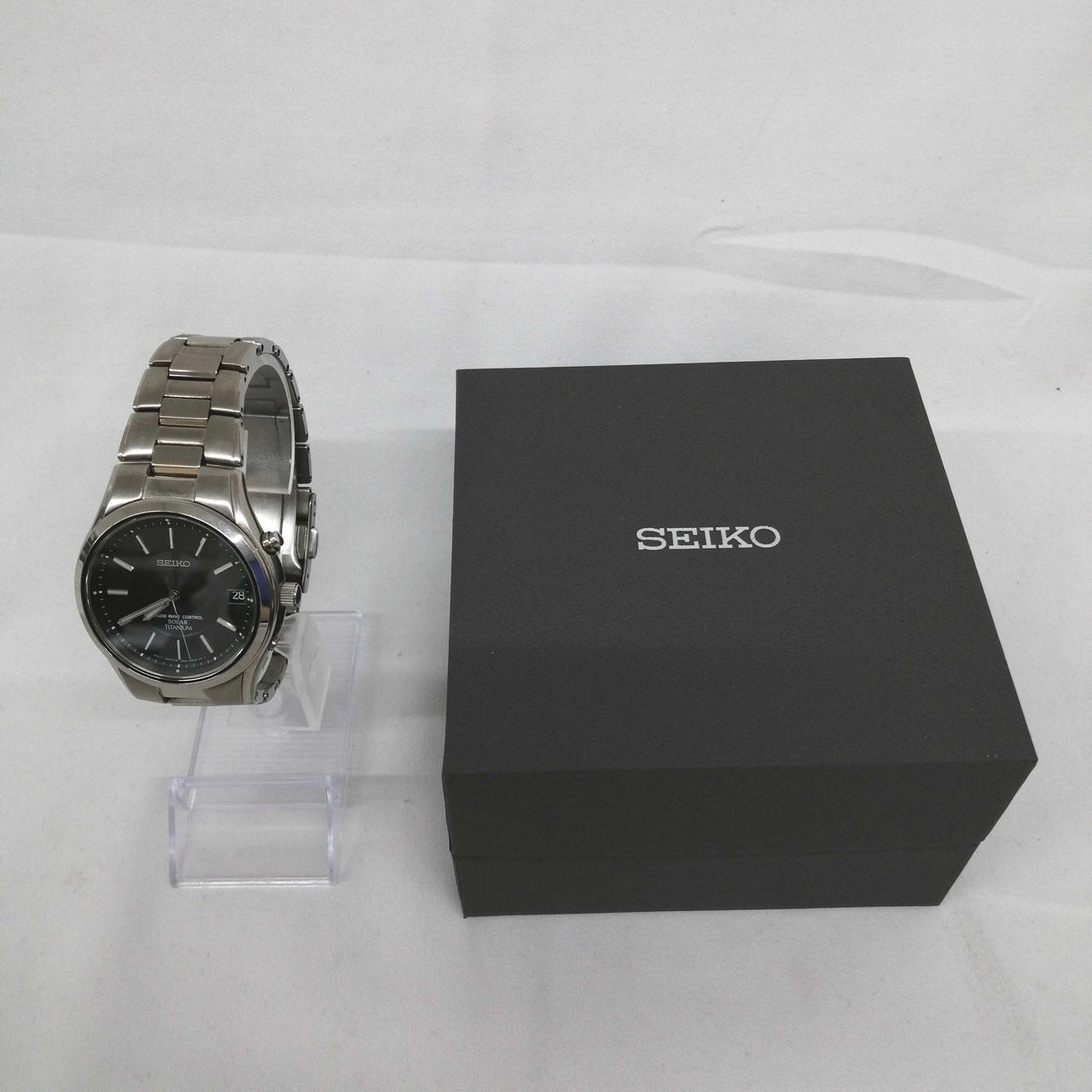 箱、説明書、予備コマ3つ付属。裏蓋やベルトにキズあります。 |