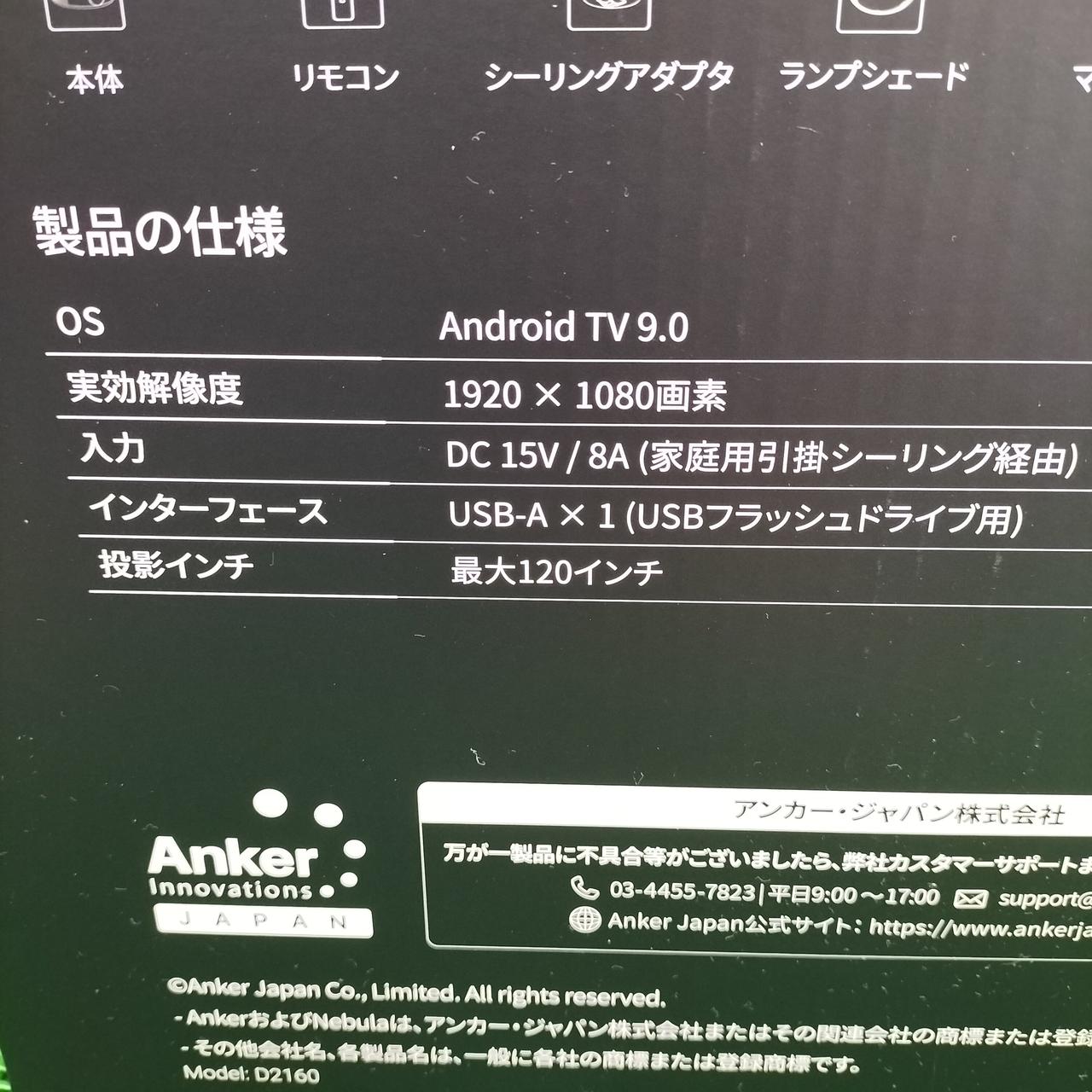 化粧箱・取扱説明書・電源・リモコン |