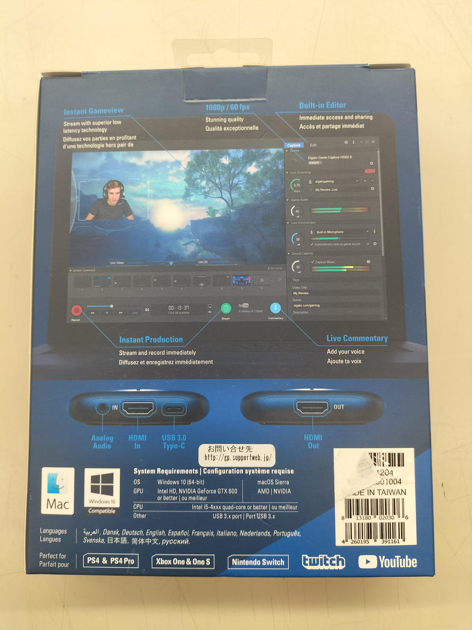 フル解像度の1080P/60FPSで、ゲームプレイを録画保存し配信できます