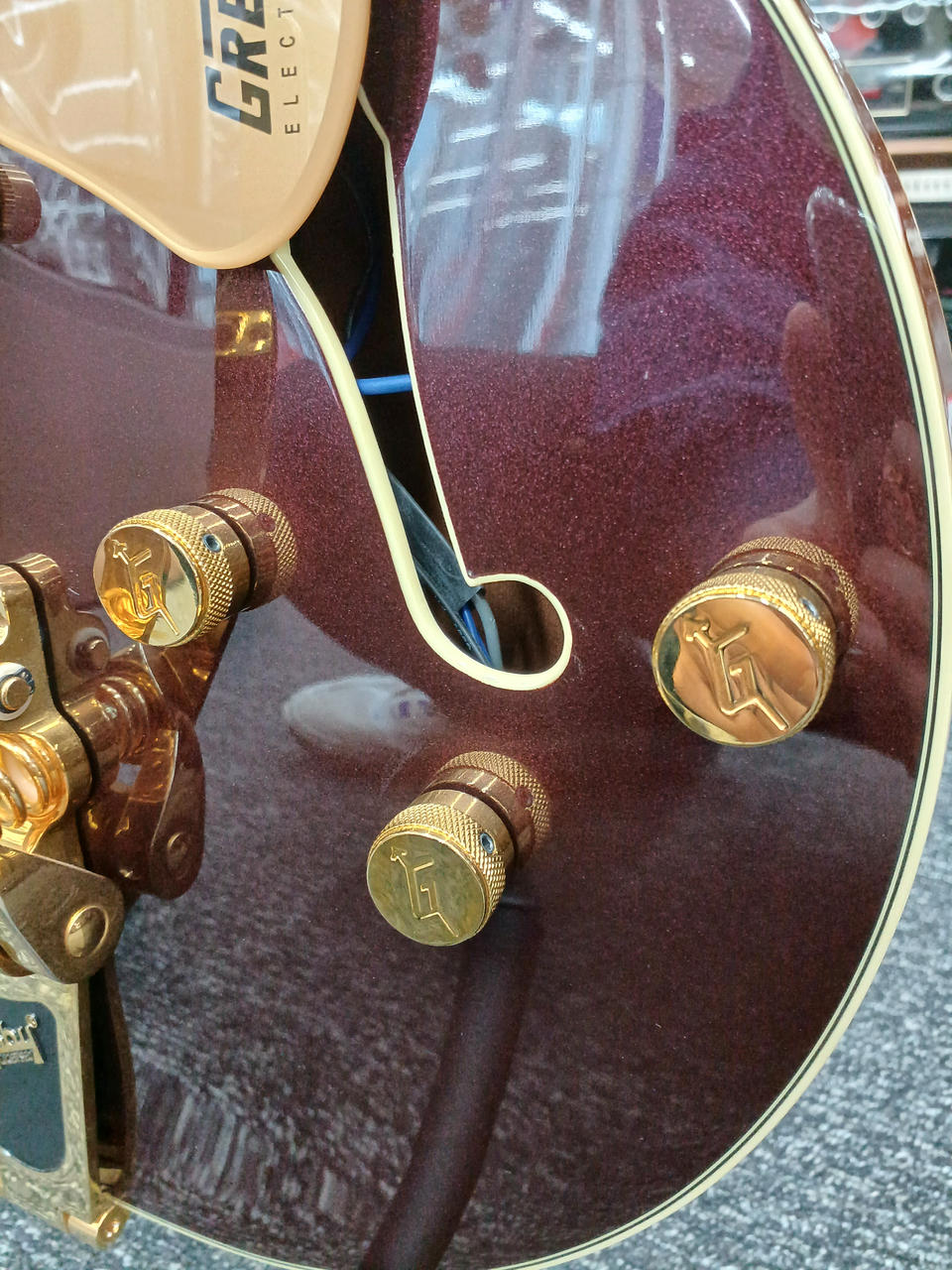 Volume 1. (Neck Pickup), Volume 2. (Bridge Pickup),Master Volume, Master Tone G-Arrow,3-Position Toggle |