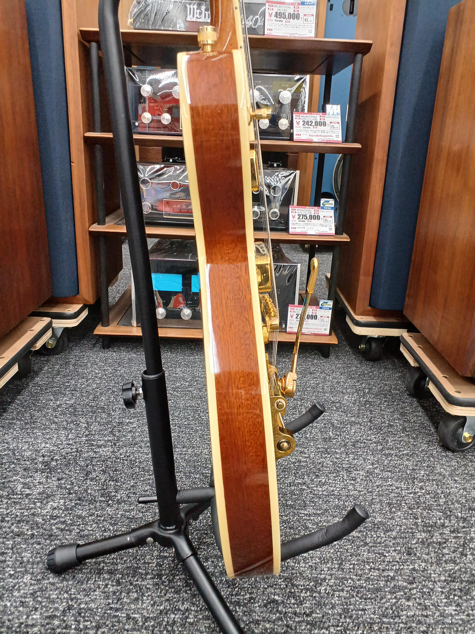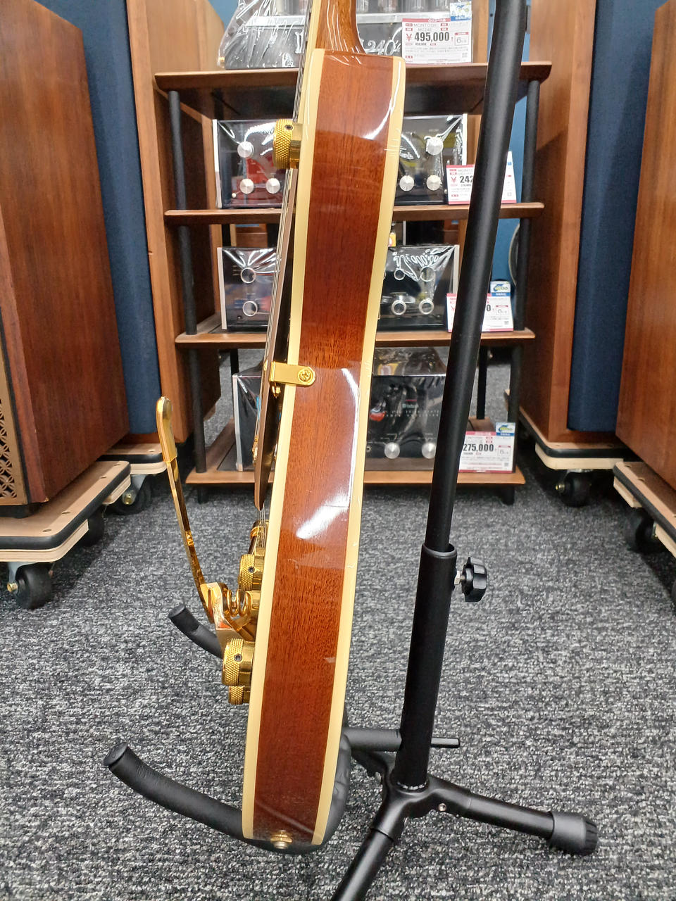 ダブルカッタウェイのマホガニーボディにチェンバードスプルースセンターブロックを採用 |
