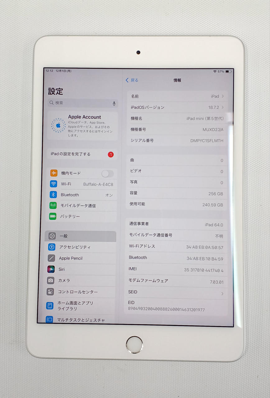 第5世代 Wi-Fi+Cellular SIMフリー iOS:18.7.2 256GB ※バッテリー保証外 |
