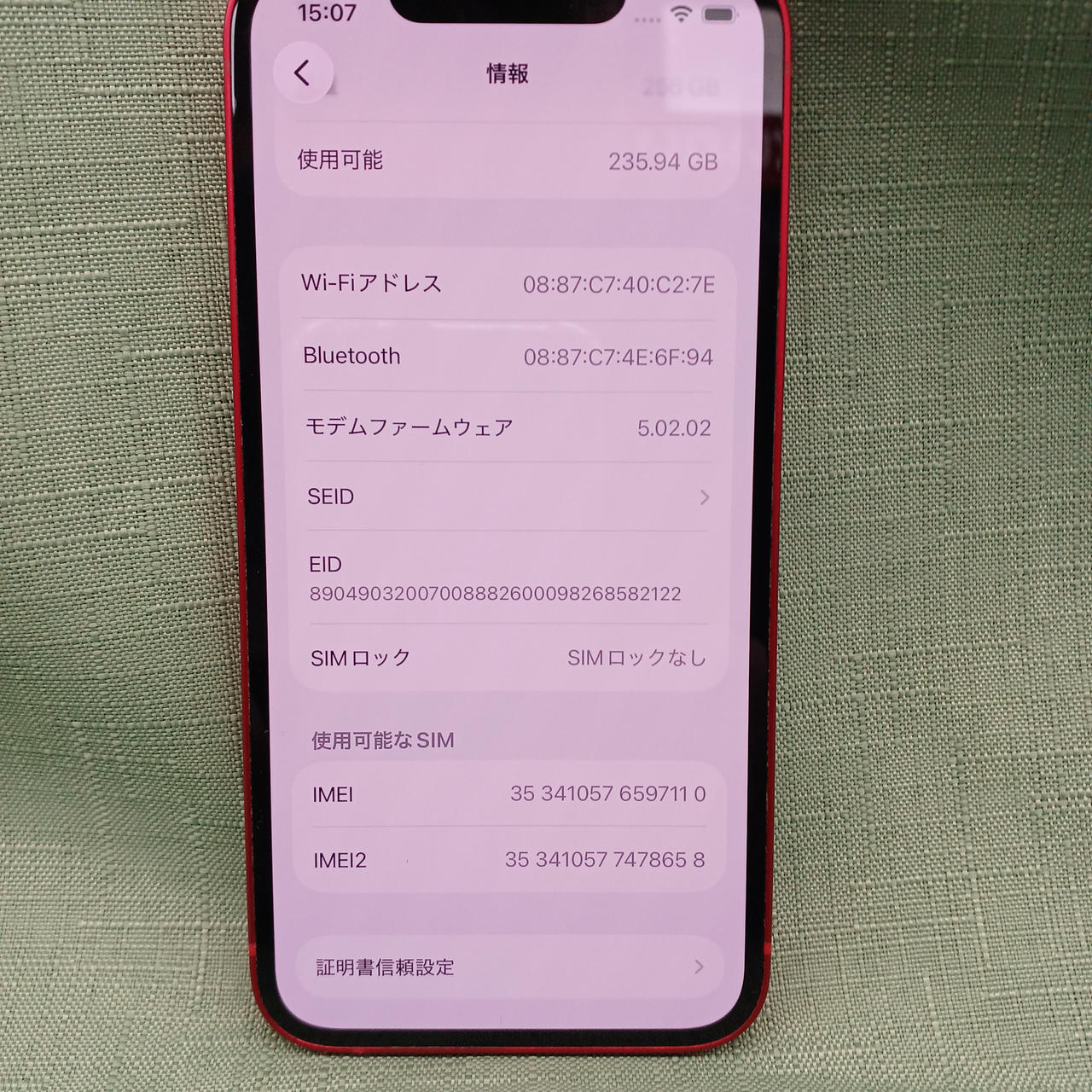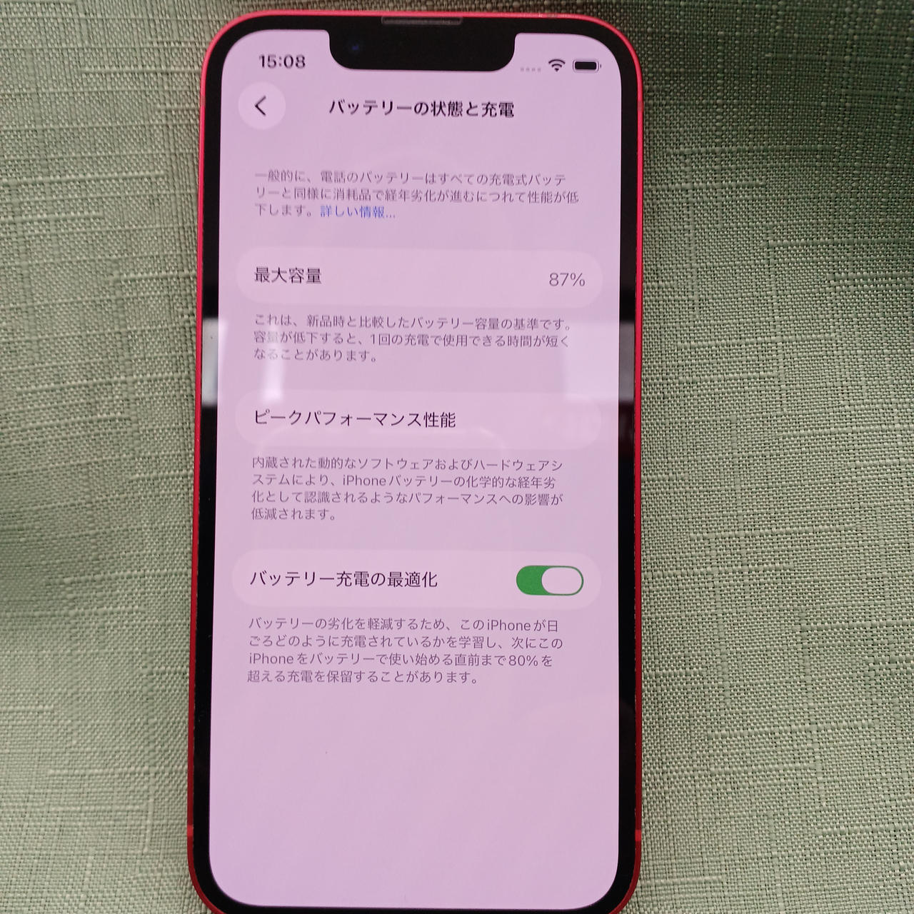 SIMロック解除済 容量:256GB iOS 26.1 バッテリー最大容量:87% |