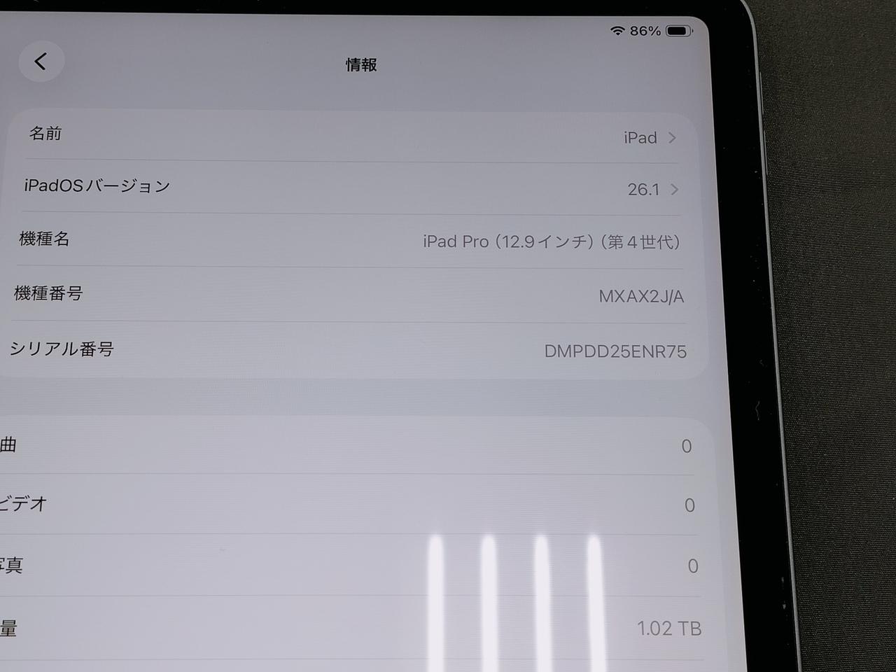 iPadOS:26.1、CPU:Apple A12Z、Wi-Fiモデル |