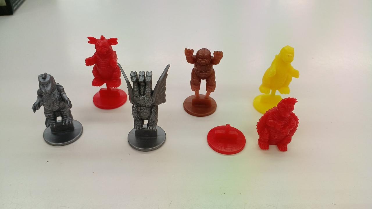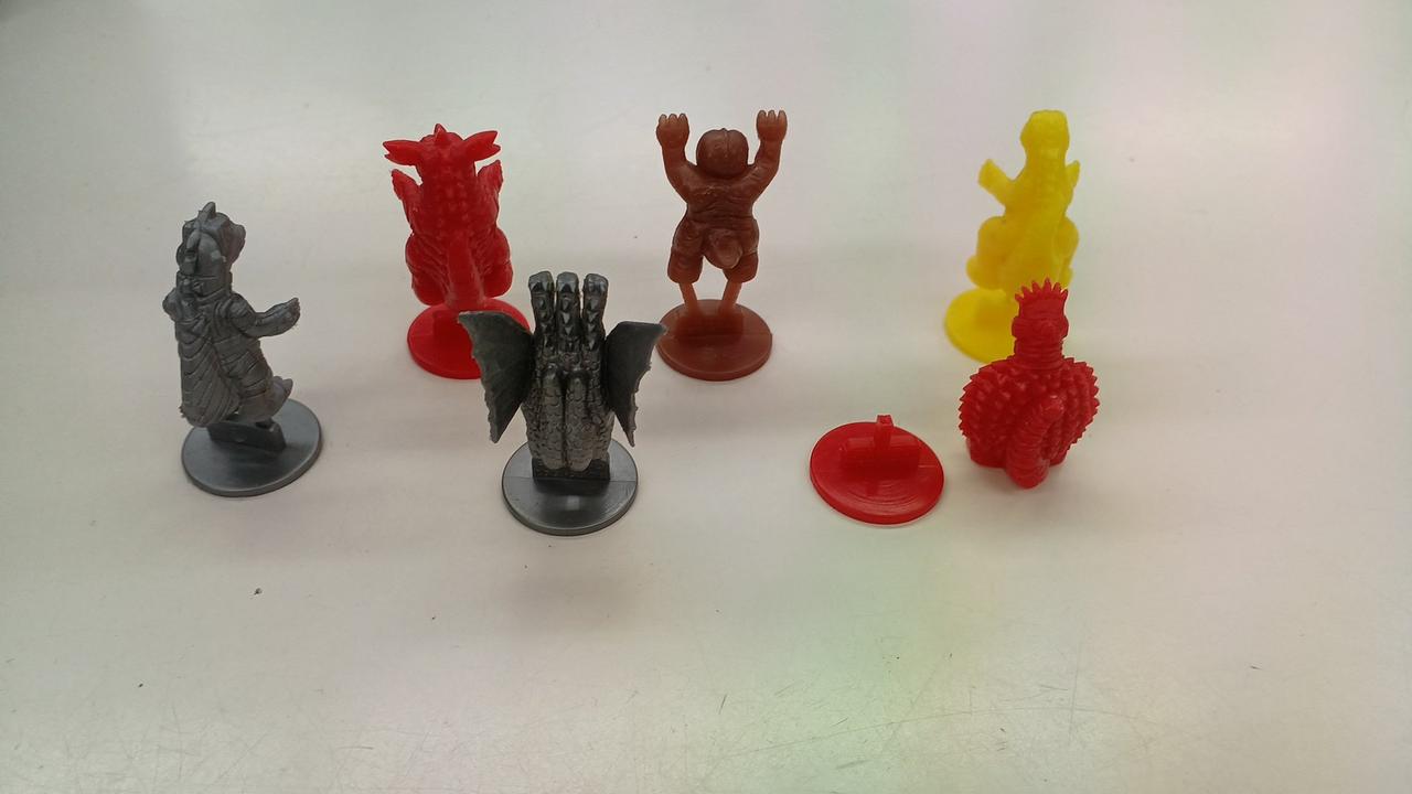 アンギラス、ゴジラ、ミニラ、メカゴジラキ、ングギドラ、バラゴンの6点セットです。 |