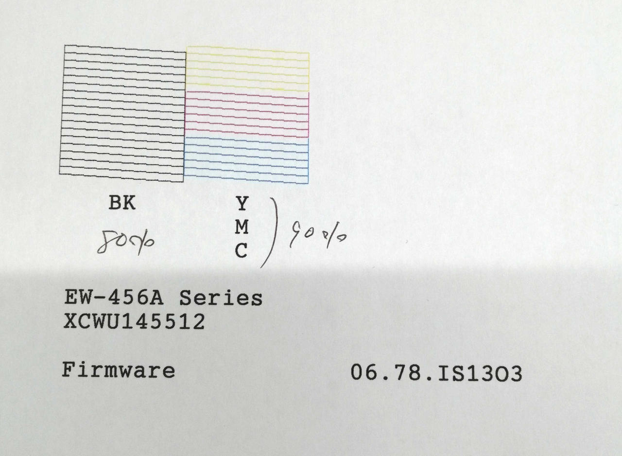 最大用紙サイズ:A4 インク色数:4色 インク残量BK:80%/Y・M・C:90% |