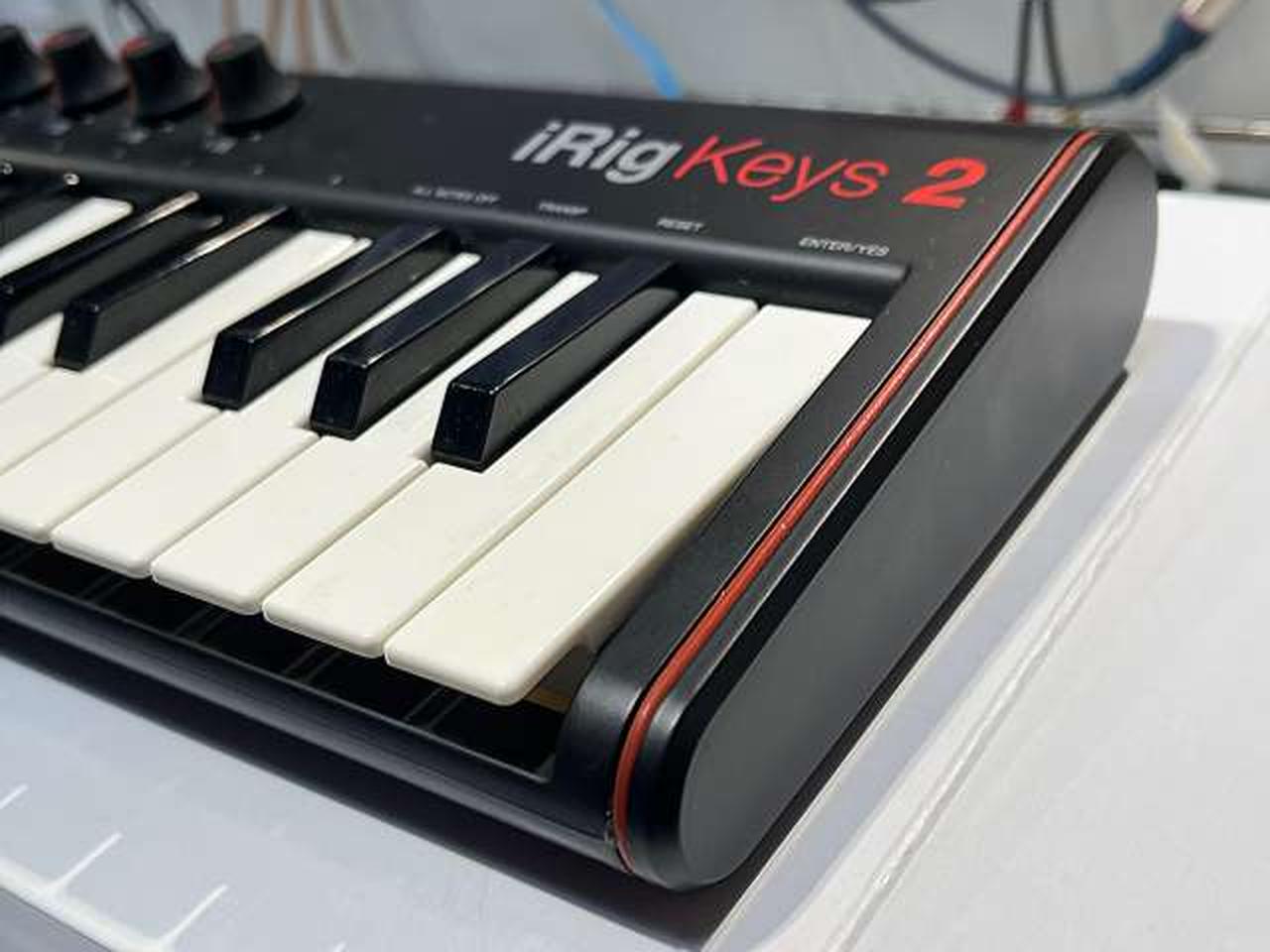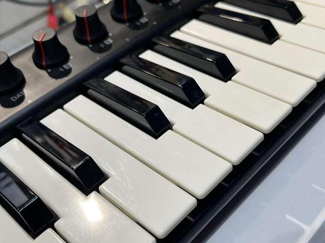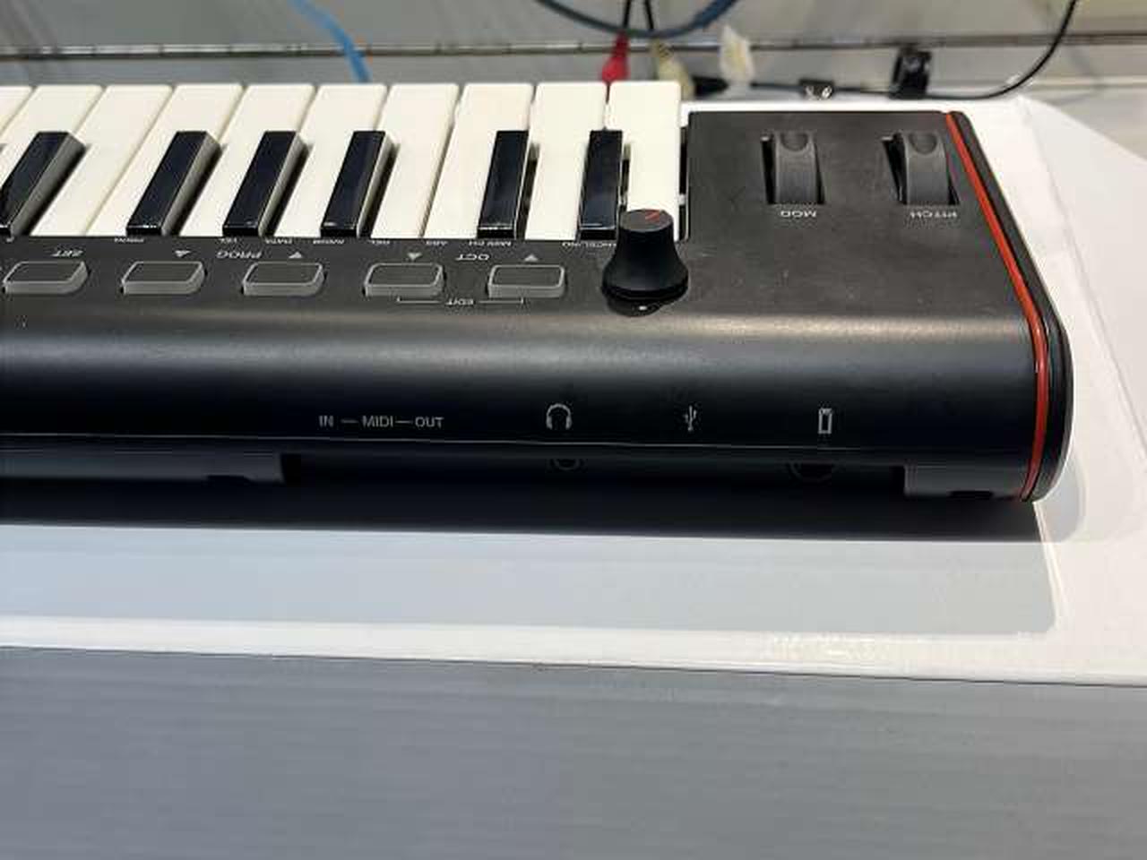 ベロシティ対応の37鍵(3オクターブ)ミニサイズ鍵盤のMIDIキーボード ヘッドホン出力端子搭載により、ヘッドホン端子を装備しないiOSやAndroidデバイスと接続した場合も、本機から出力音声をモニタリングできる。 |