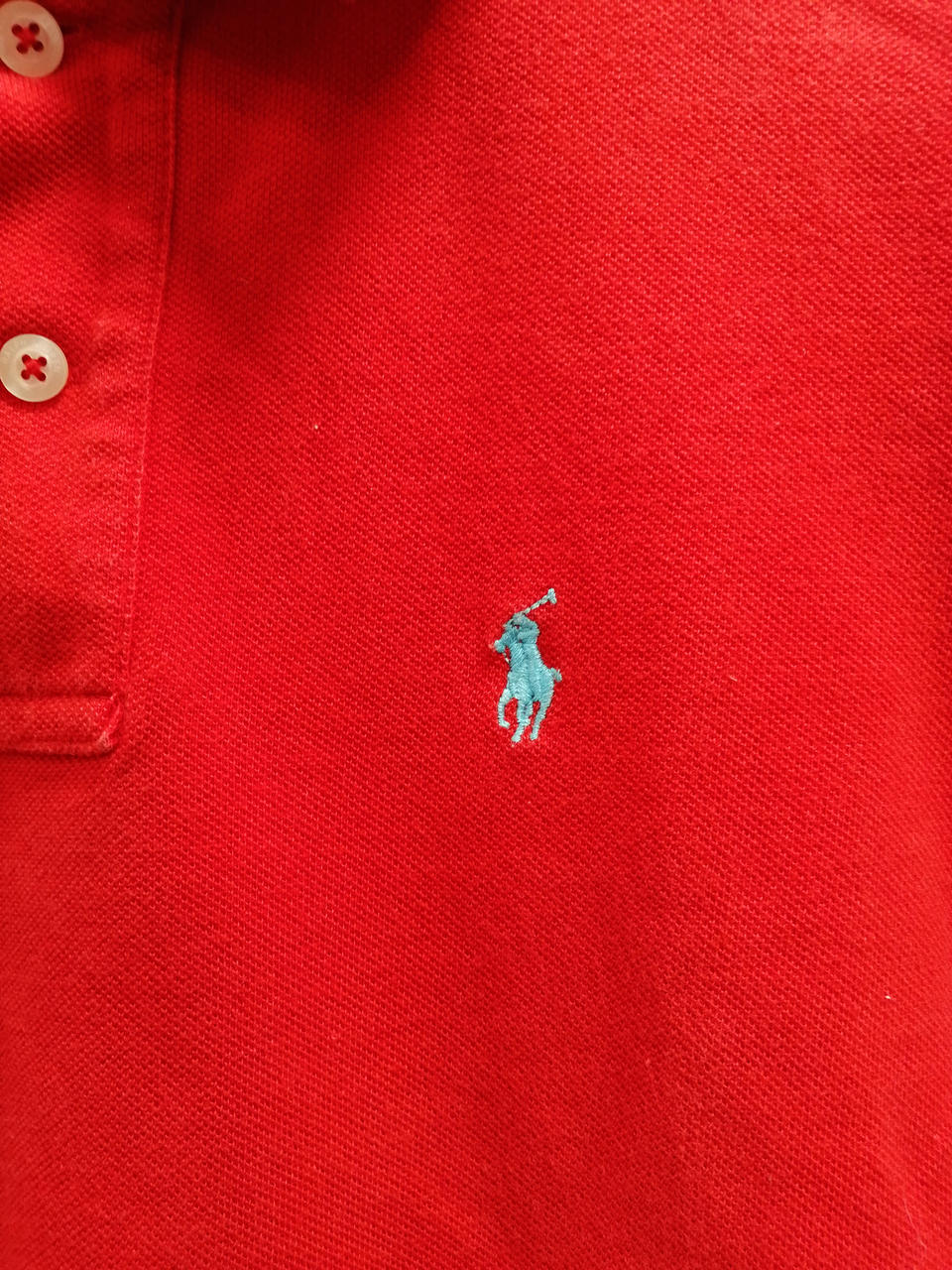 ラルフローレンのワンポイント刺繍半袖ポロシャツです。首元に若干の毛羽立ちがありますが、まだまだご着用いただける一着です。 |