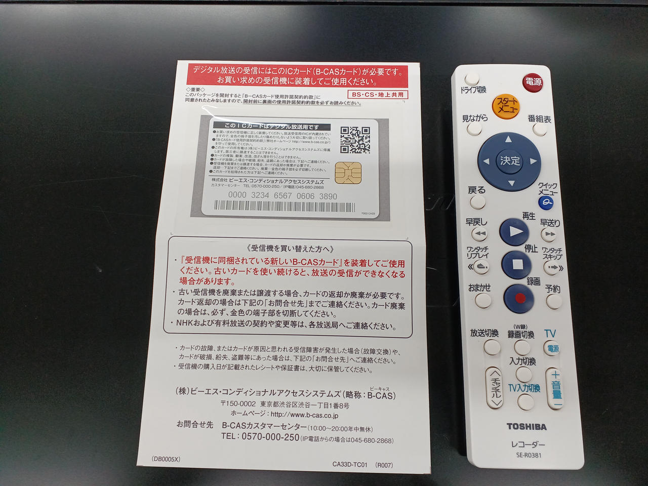 付属品:リモコン・B-CASカード