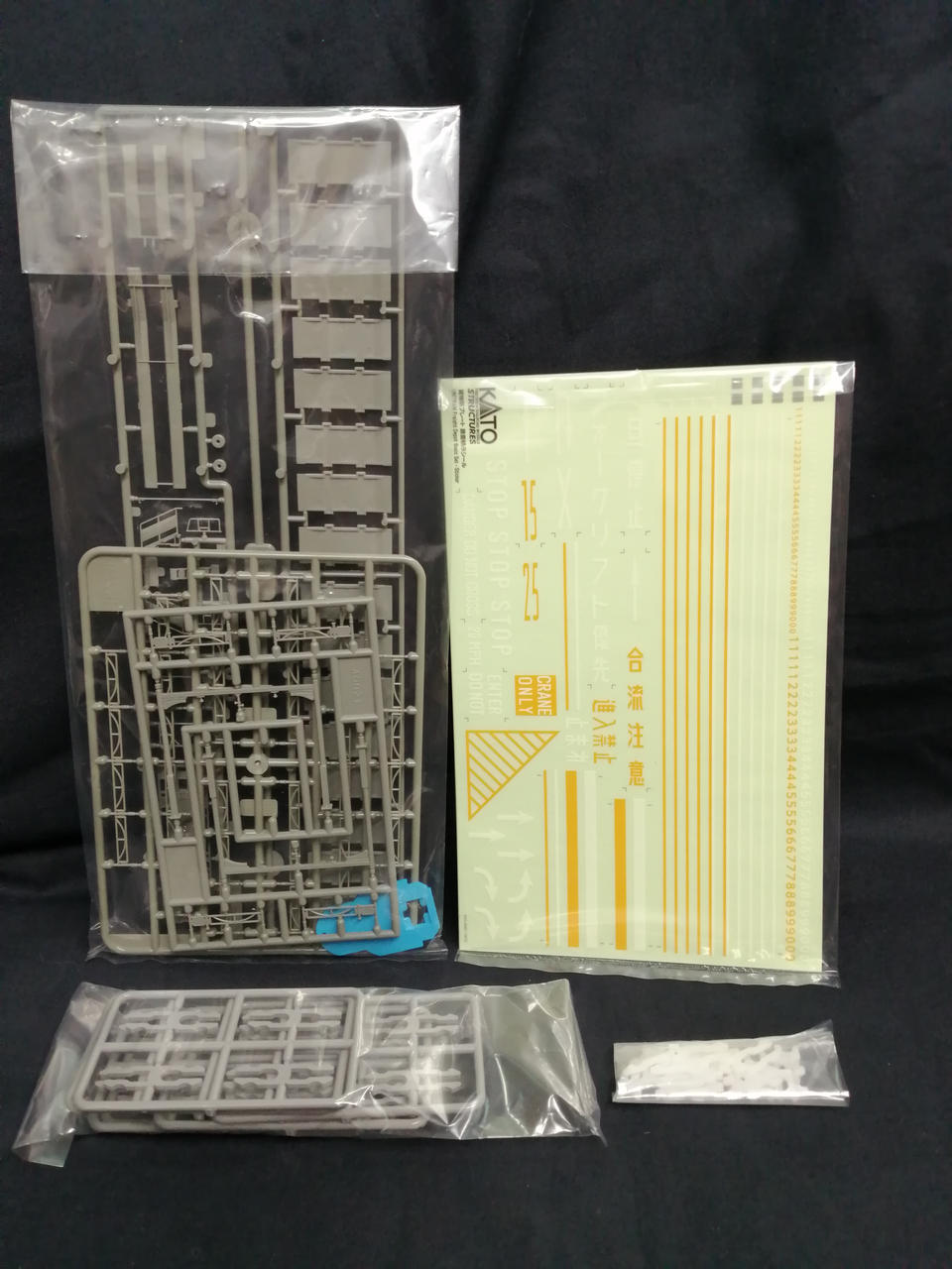 説明書、路面標示シール、ランナー一式(フェンス、フェンス付架線柱、自動車積卸部品)、トラムジョイナー、プレートジョイナー、ユニジョイナーはずし |