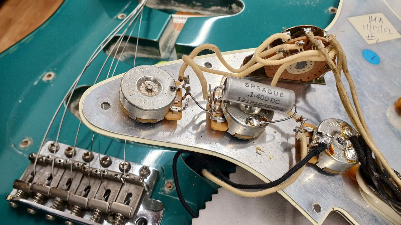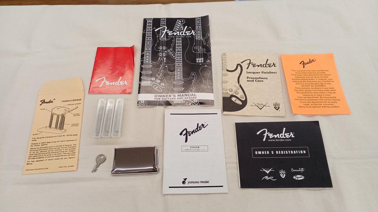 アーム・ブリッジカバー・メーカーの紙類(※メーカー保証書ありますがこの本体についての記載は無し)・FENDER製ツイードハードケース※打痕あり |