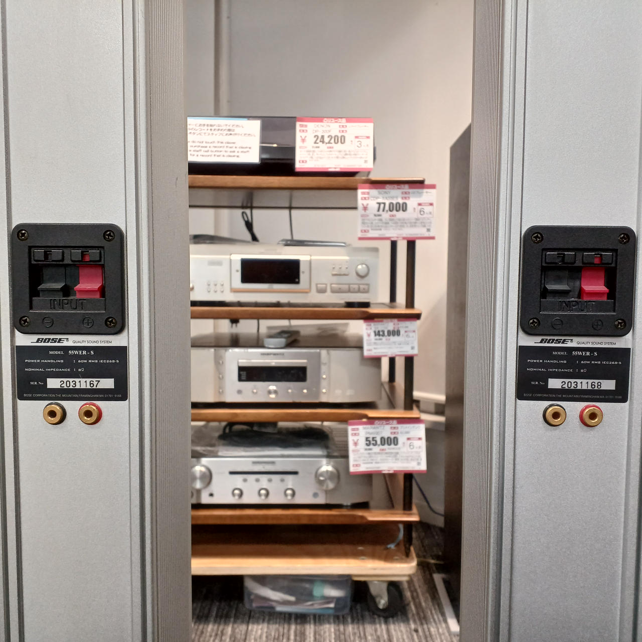 ■再生周波数特性:55Hz~20kHz ■インピーダンス:8Ω ■許容入力:60W |