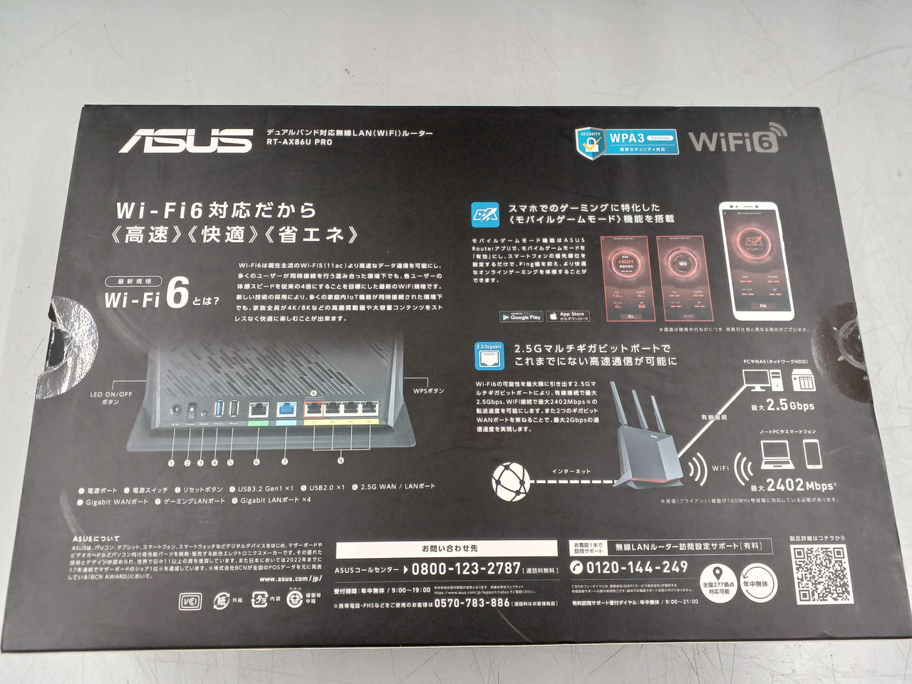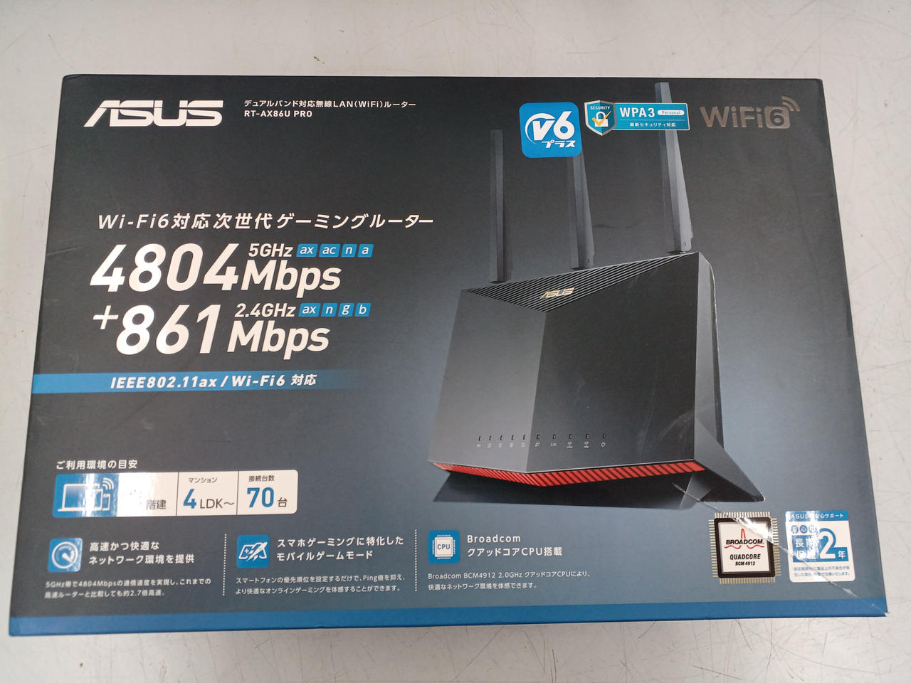 v6プラス/OCNバーチャルコネクト対応のWi-Fi 6デュアルバンドゲーミングWi-Fi無線ルーター。ゲーム通信を優先化させるゲーミングLANポートを搭載。 |