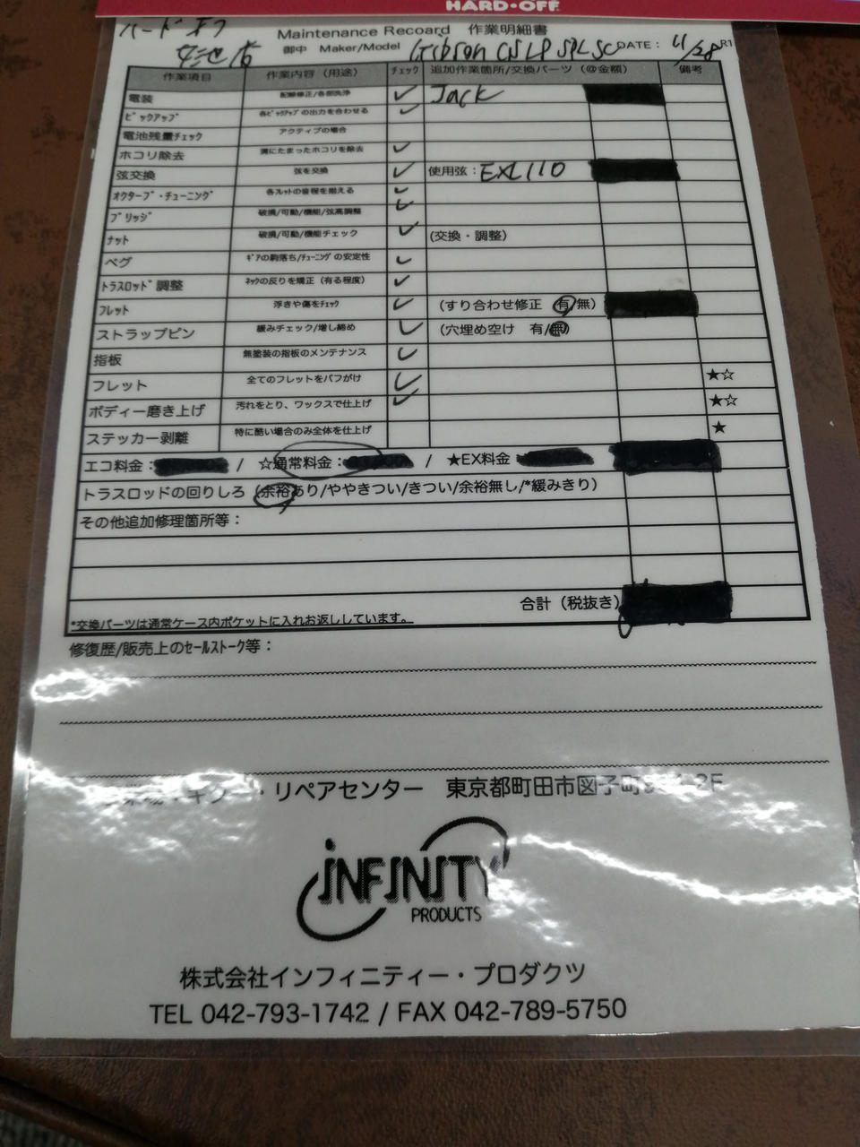 (株)インフィニティープロダクツ様にて調整&メンテナンス済です。作業内容は別紙の確認をお願いします。 |