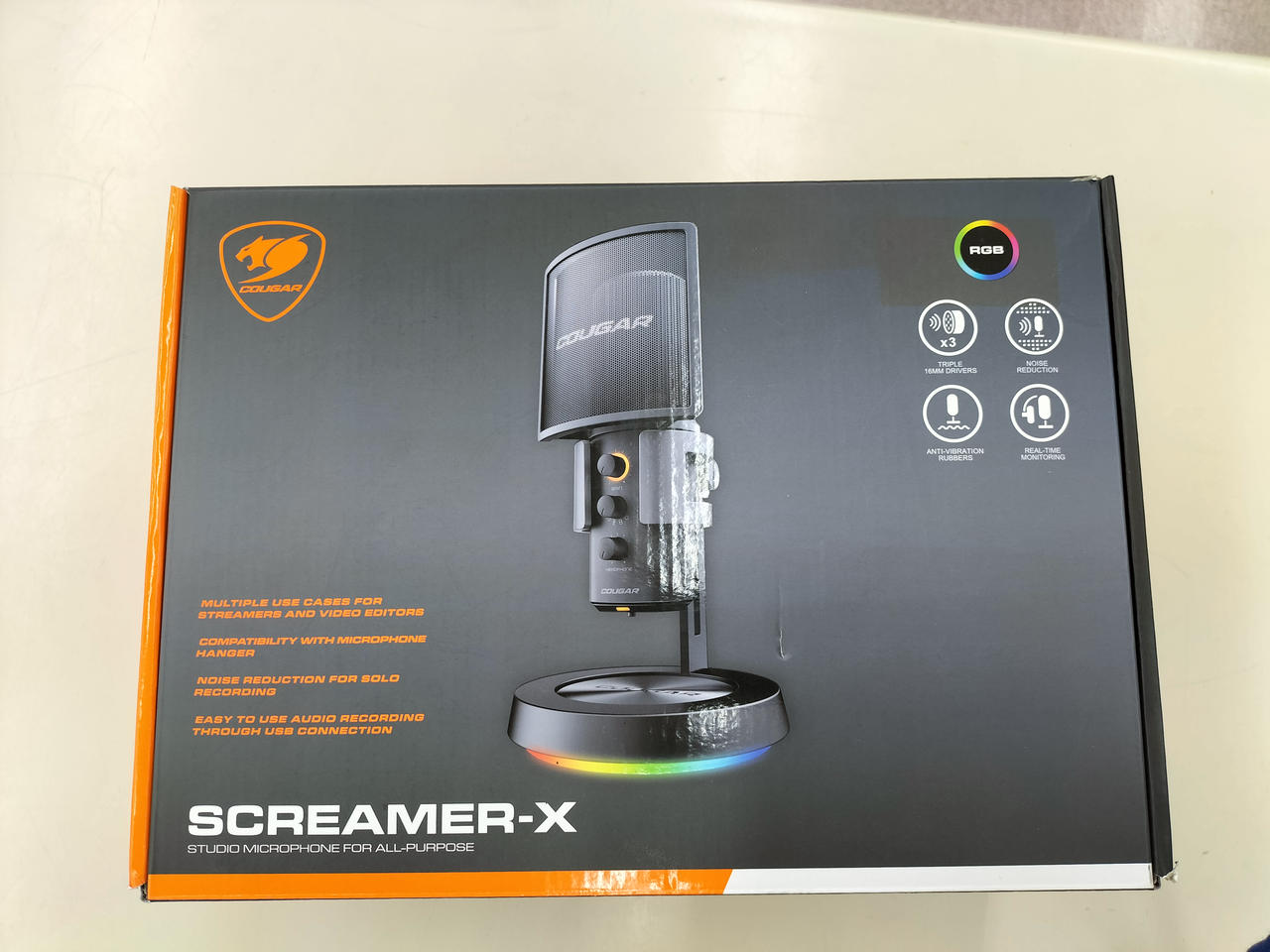 ストリーミング、インタビュー、音声の録音などマルチに活躍できるよう設計されたCOUGAR初のデスクトップマイク。 |