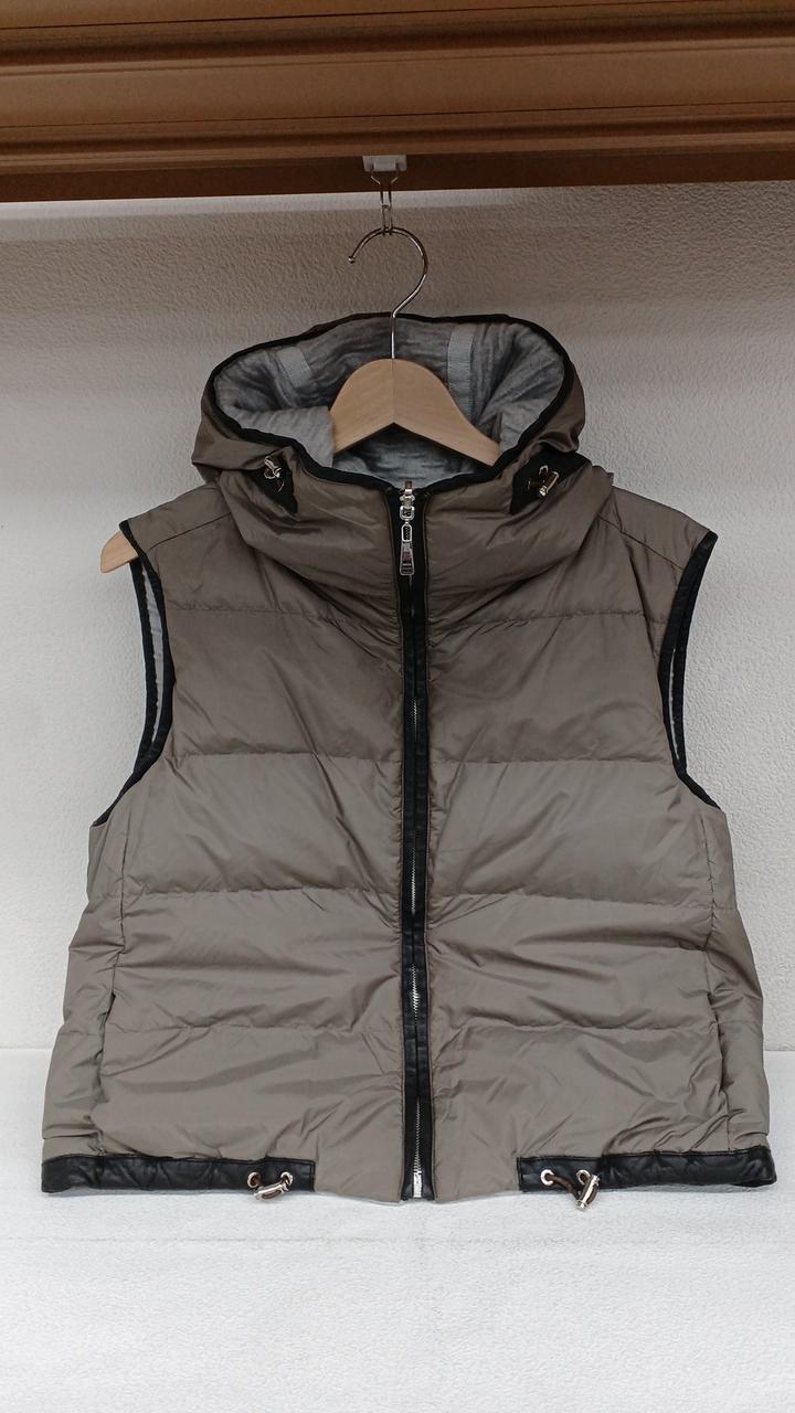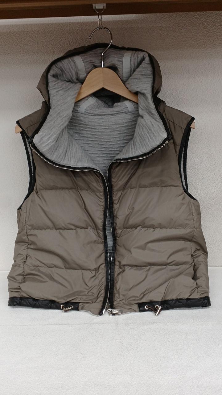MALOのリバーシブルダウンベストです。レザー部分に小さなスレ、ドローコードに色褪せがありますが他に目立った汚れなどは無くまだまだご着用して頂けるお品です。 |