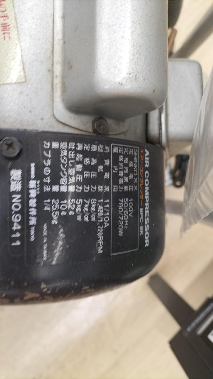 最高圧力:8kg 定格圧力:7kg 吹出空気量:52l/min タンク容量:10l