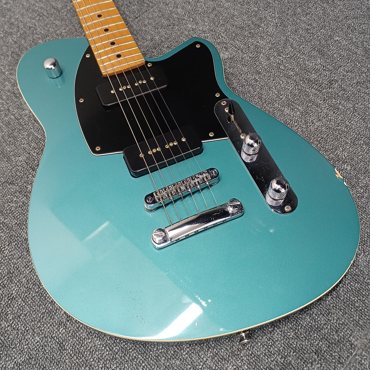 ボディは希少材のKorinaを採用 テレキャスターをベースとしたデザインを持ちつつも非常に個性あふれるルックスが特徴です! |
