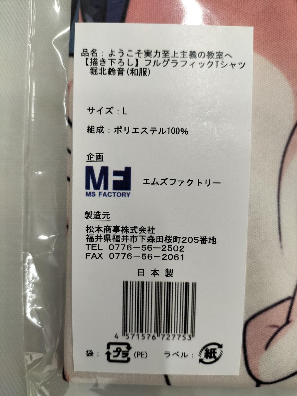 型番:フルグラフィックTシャツ 堀北鈴音