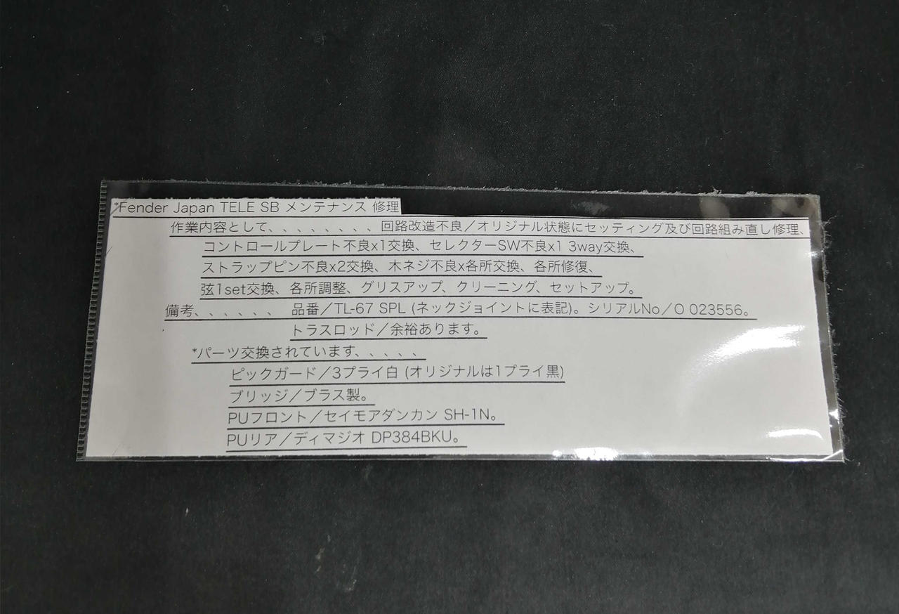 パーツ交換されています。 ピックガード:3プライ白 ブリッジ:ブラス製 PUリア:ディマジオDP384BKU PUフロント:セイモアダンカンSH-1N |