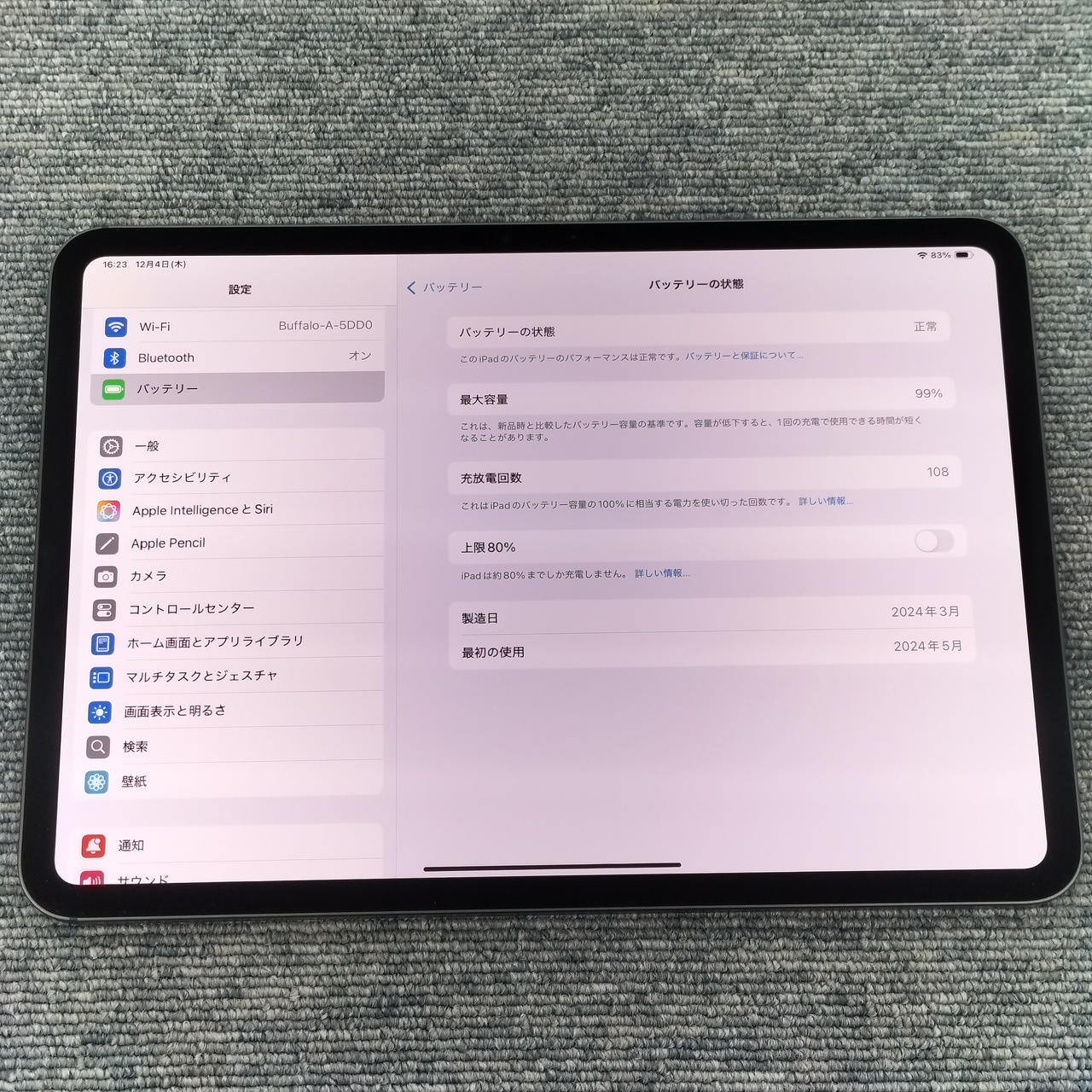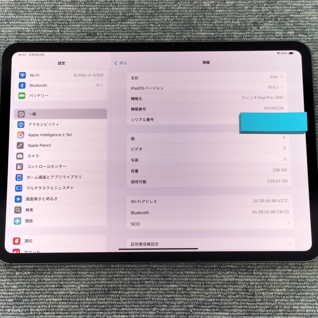 Wi-Fi 256GBモデル 画面サイズ:11インチ OS:iPadOS 18.6.2 |