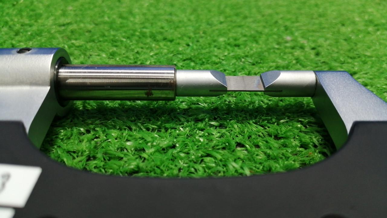 測定面がブレードタイプで、丸物の細溝の径などを簡単に正確に測定できます |