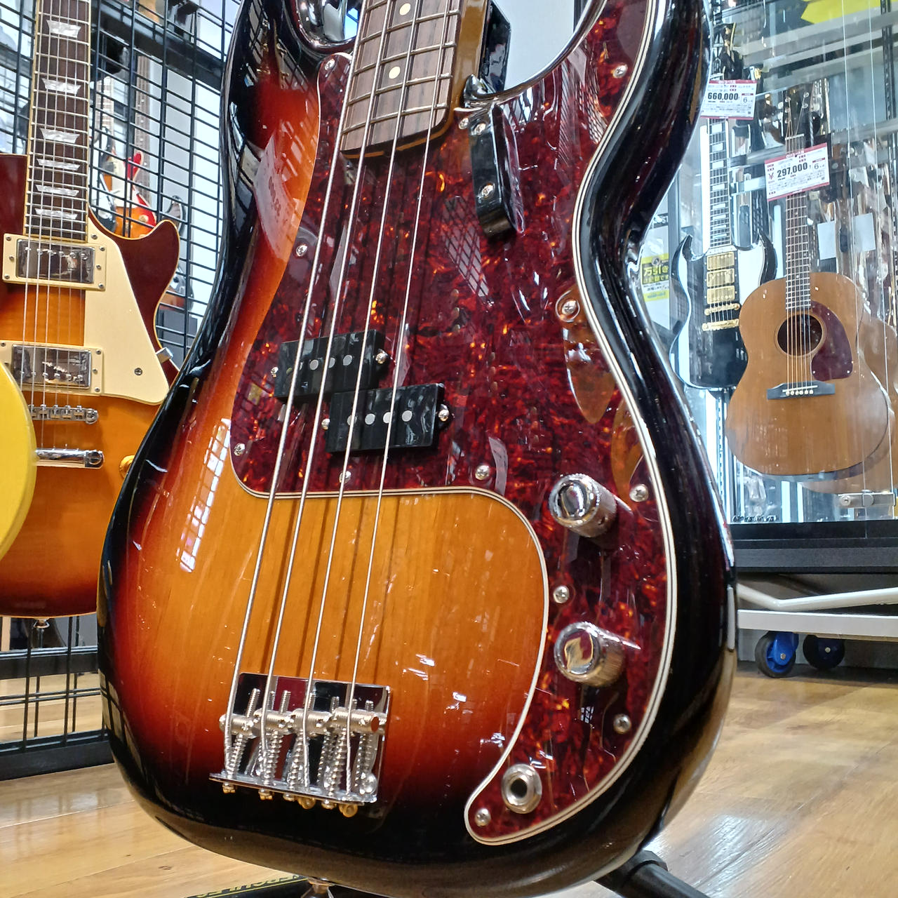 指板材のアップグレードやネックシェイプの見直しが図られた”Vintera2”。こちらは60年代仕様を再現したプレべです。 |