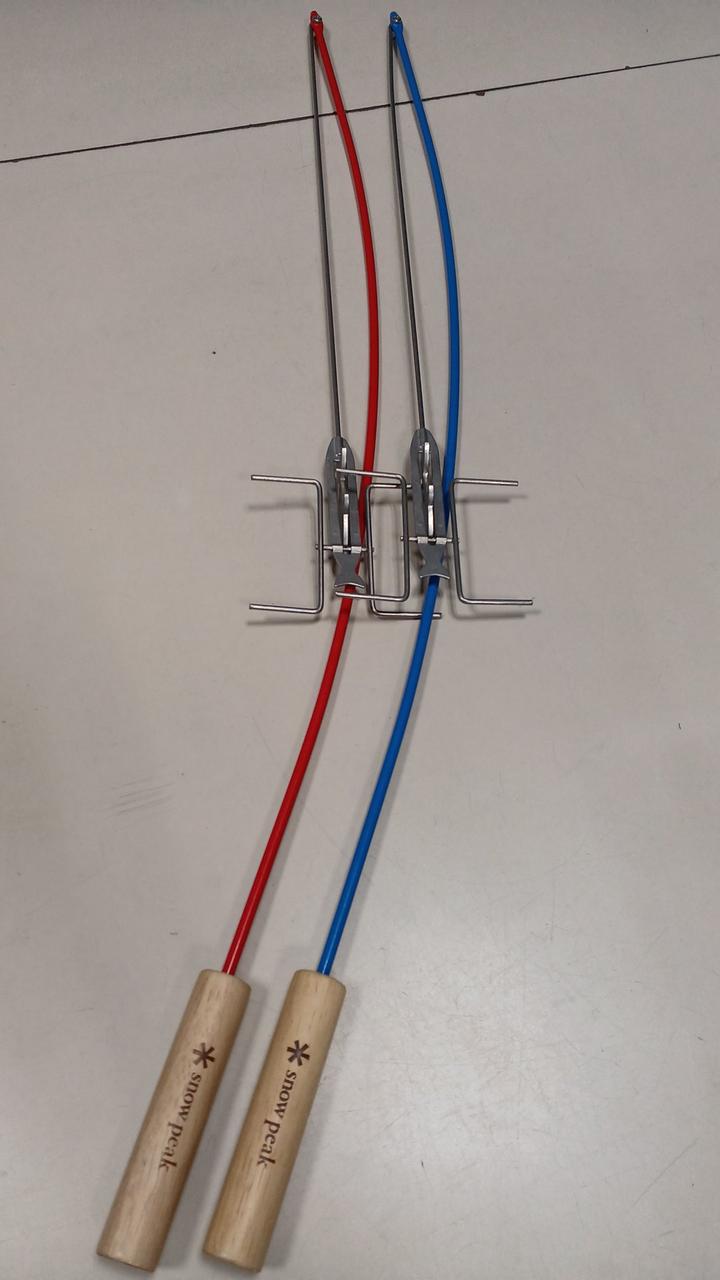 ロッドを上下にスナップさせる事で食材の取り付け部が反転する構造になっています。釣り感覚で楽しく食材を焼く事が出来ます。
