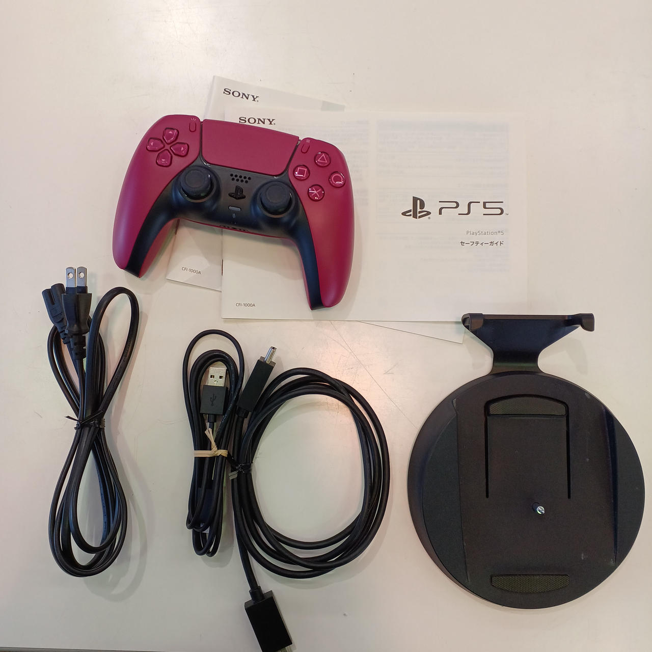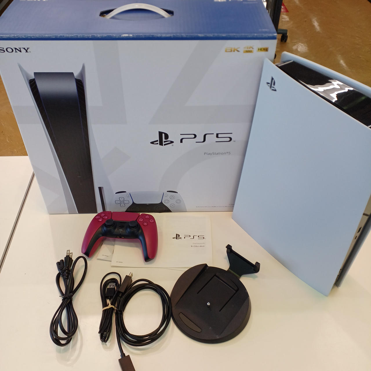 コントローラー(赤)、HDMIケーブル、USBケーブル、スタンド、電源ケーブル付属 |