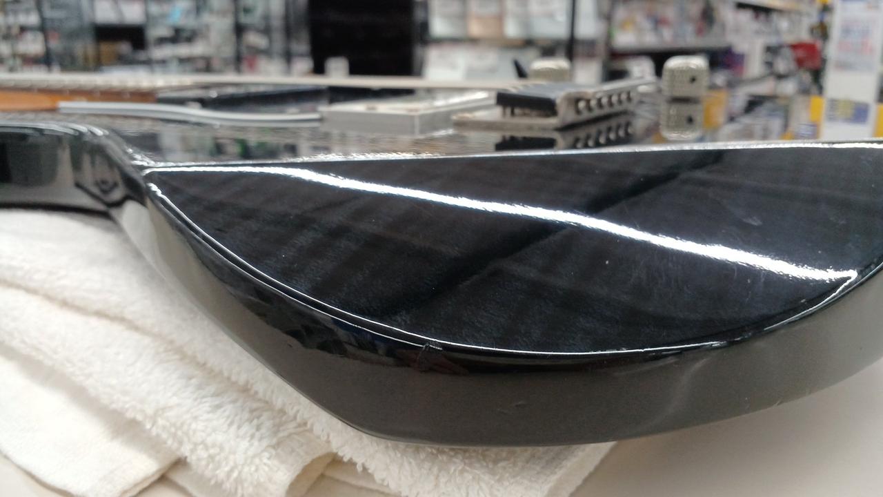 ボディトップ及びヘッドに美しい杢目のフレイムメイプルを採用。 |