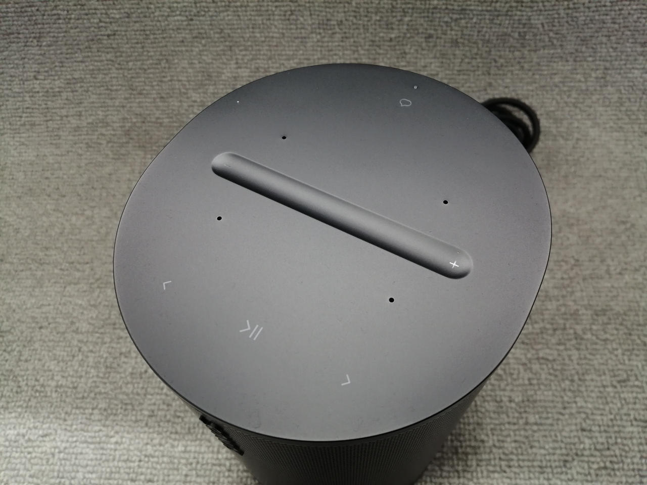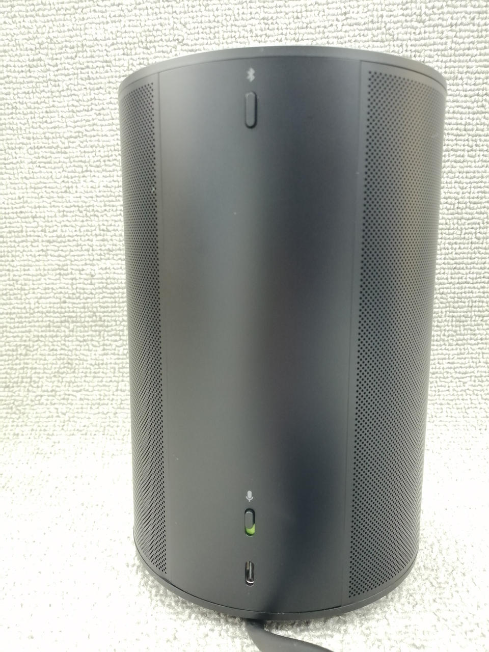 再生プラスチックを採用した、シンプルで馴染みやすいデザインのワイヤレススピーカー。 |