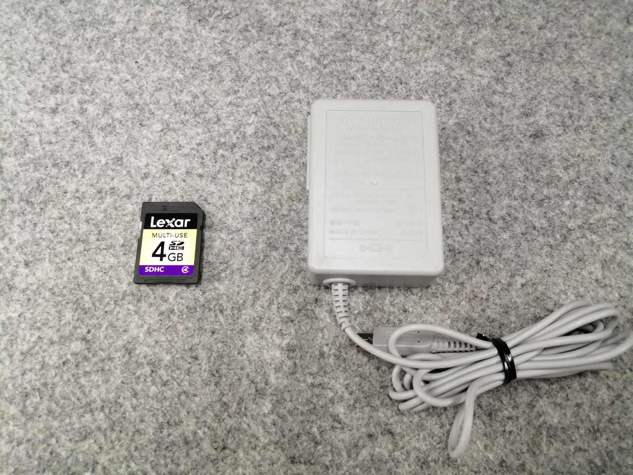 充電器、SDカード(4GB)