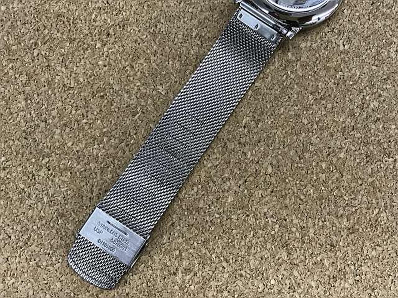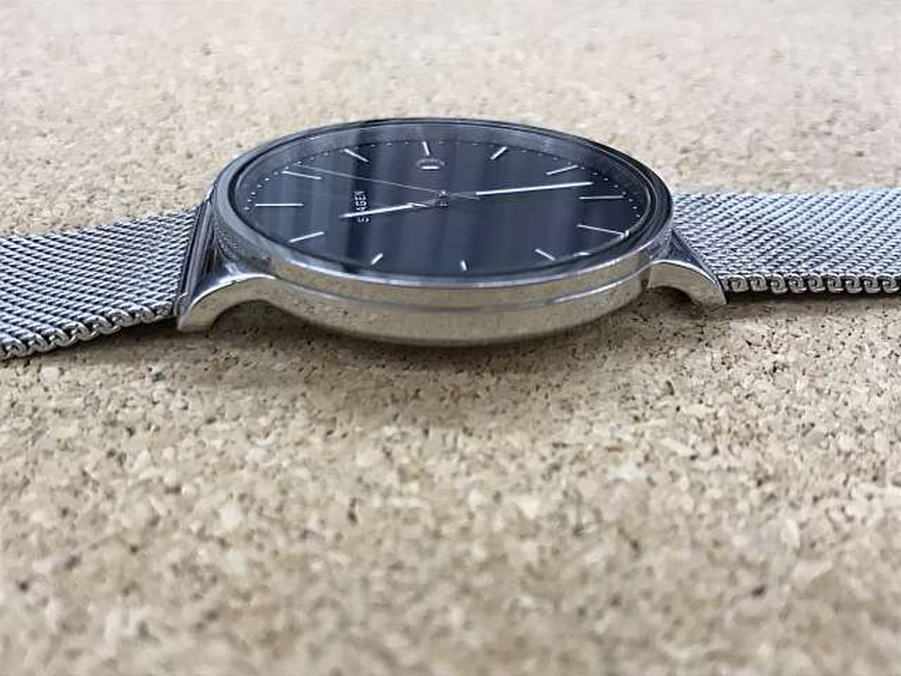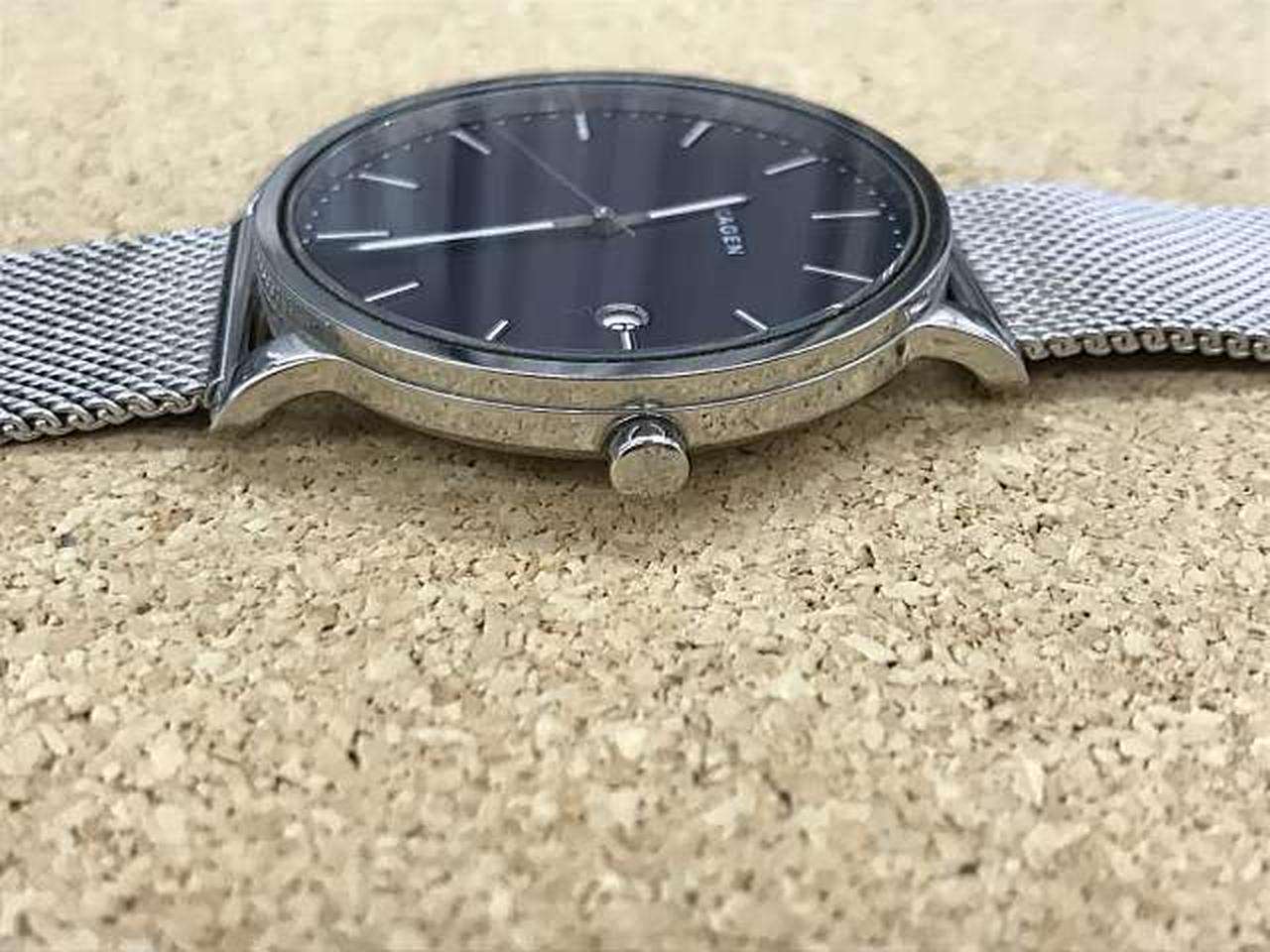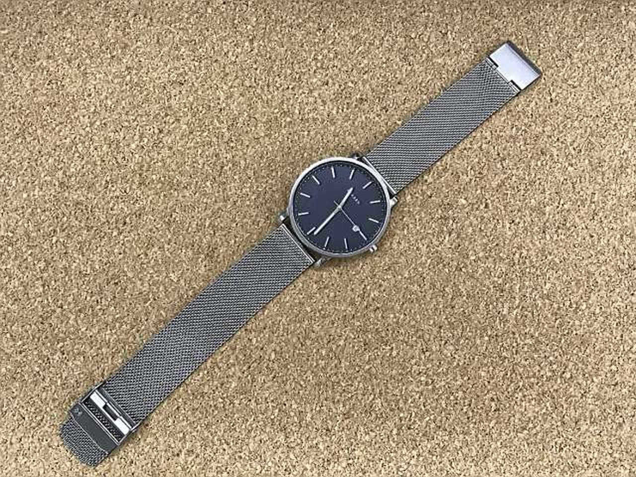 デンマーク語で「港」を意味するHAGEN。視認性のよいシンプルで洗練されたデザインで、人気のシルバーメッシュに冬のブルーを文字盤で表現したモデルです。 |