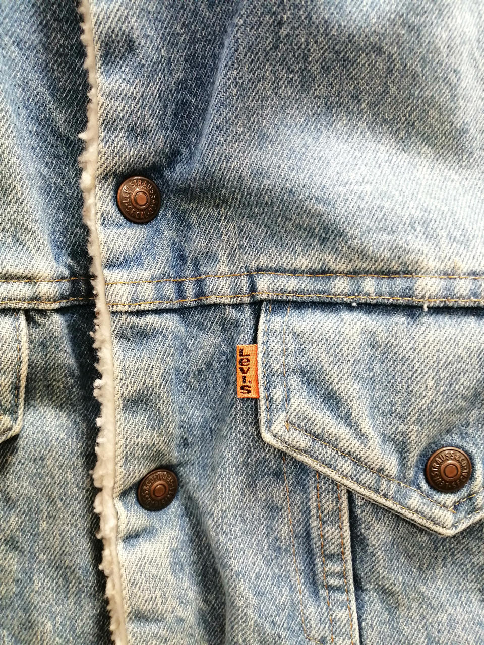 リーバイスのボアデニムジャケットです。全体的に色落ちがありますが、これからもご着用いただける一着です。 |