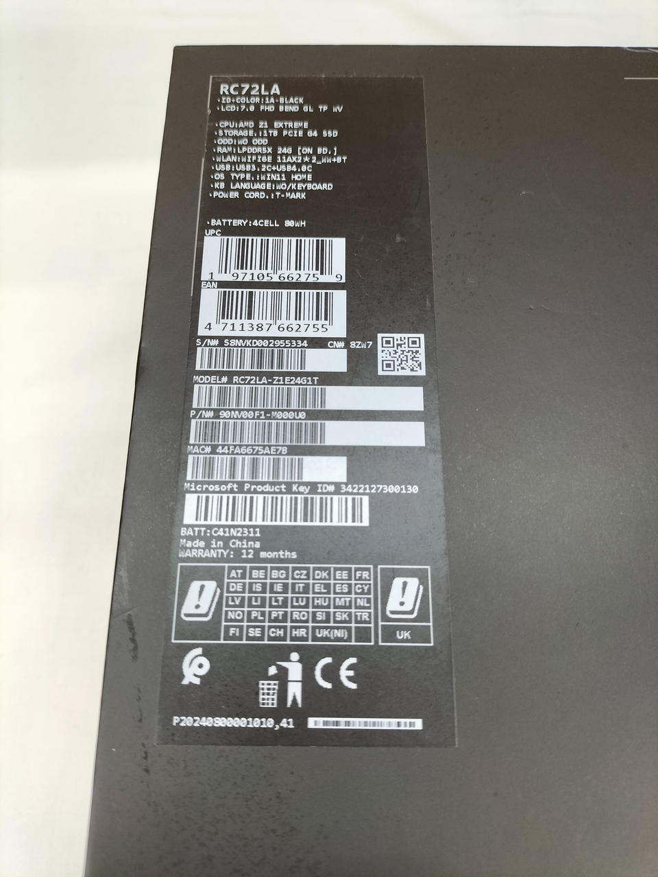 CPU:AMD RYZEN Z1 EXTREME RAM:LPDDR5X 24GB SSD:1TB |