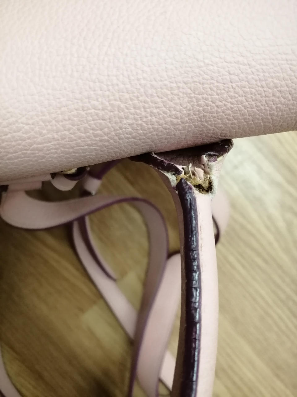 持ち手部分、ショルダー部分が裂けてきています。